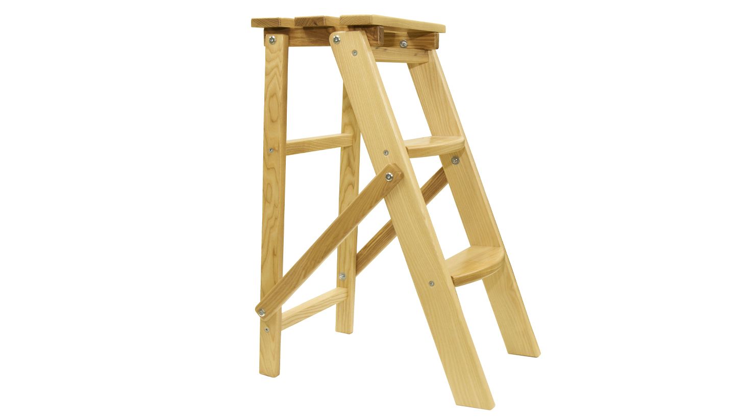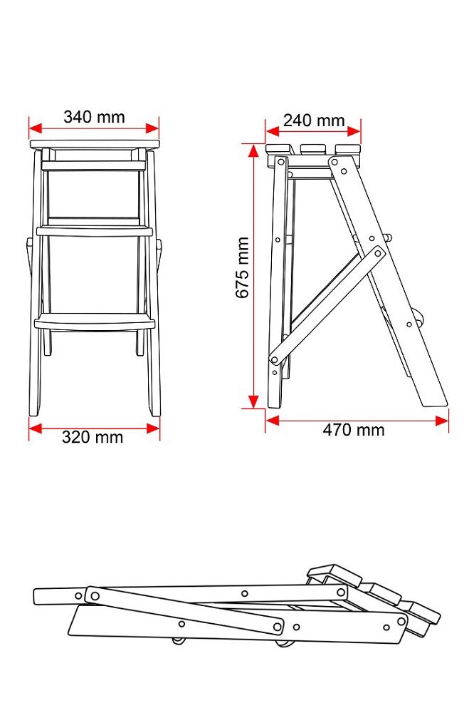 Матеріал драбини - ясень, ступені та верхня платформа - також виконані з ясеню.