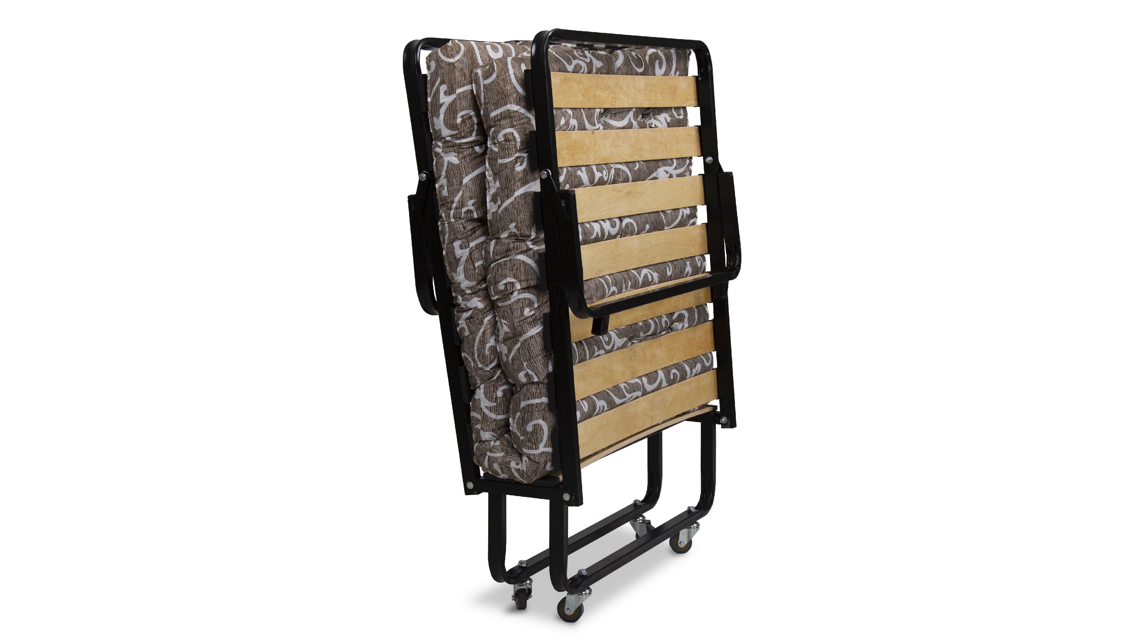 Розкладачка легко складається і розміщується в стоячому положенні, що робить її компактною та зручною для зберігання. А коліщатки, які розташовані на каркасі, дозволяють легко пересувати розкладачку з місця на місце