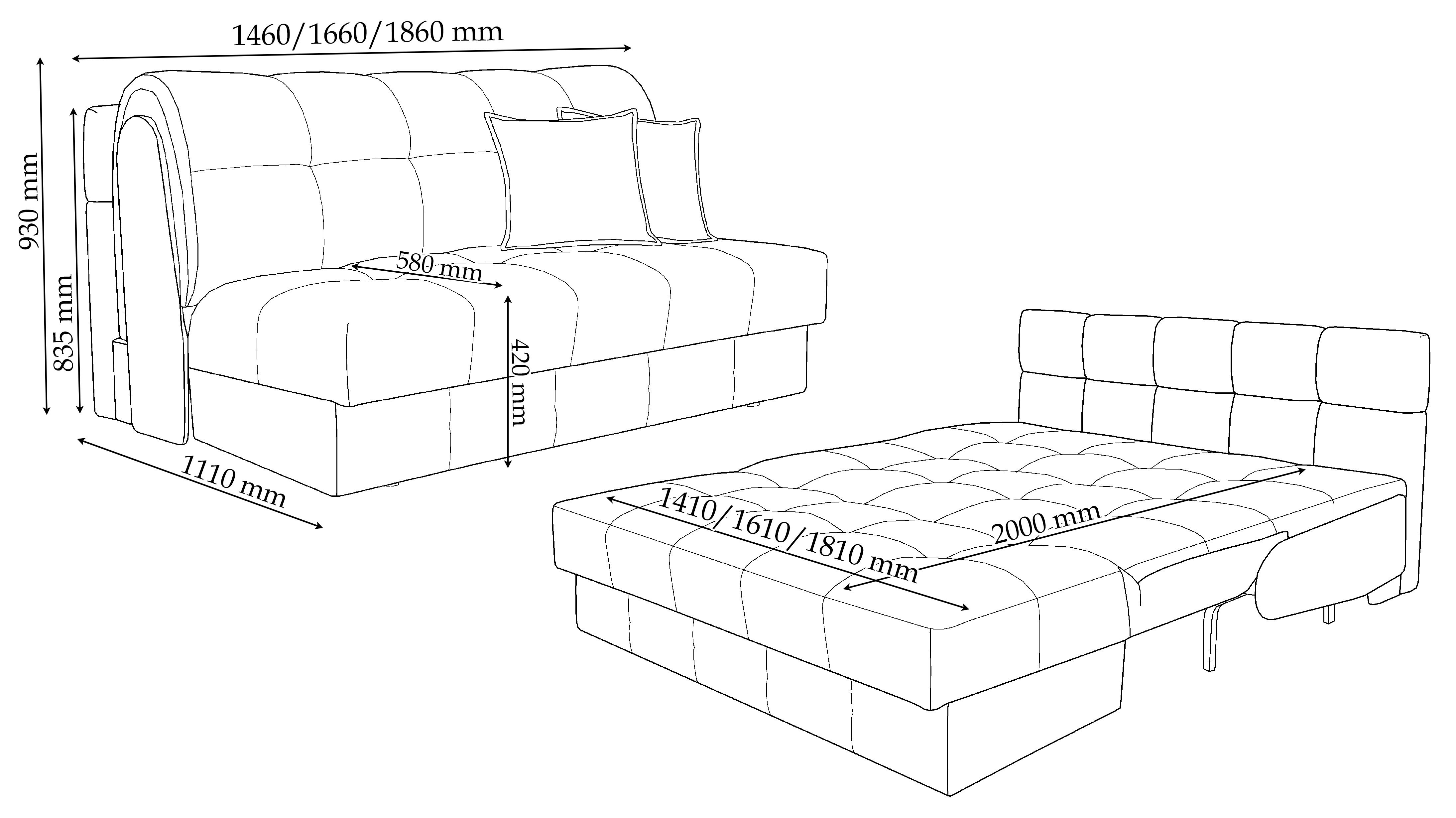 Для економії простору диван виконаний без підлокітників, що дозволить розмістити його навіть у малогабаритному приміщенні.