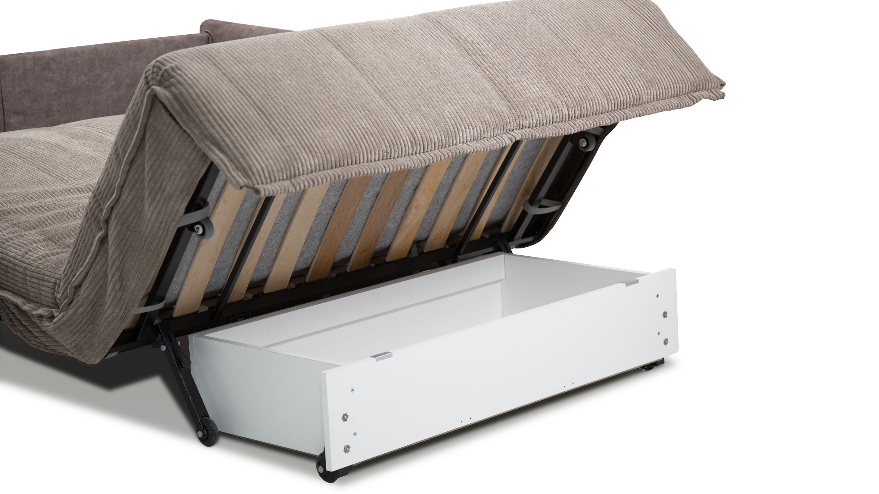 Диван може бути оснащений ящиком для білизни як додатковою опцією, в ньому зручно зберігати постільну білизну та інші спальне приладдя.