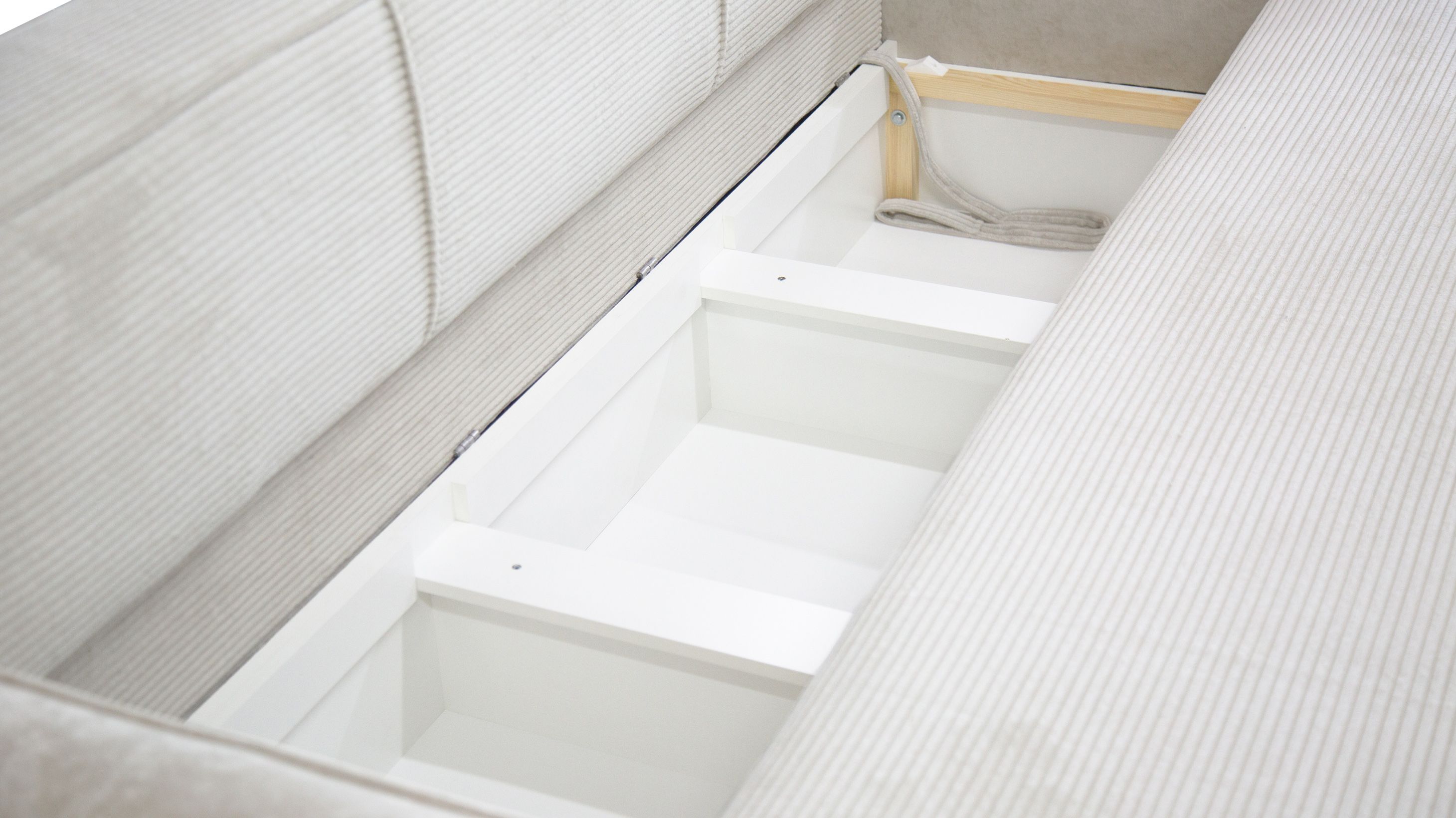 Під сидінням є великий місткий короб, який дозволяє зберігати речі прямо в дивані, не займаючи додаткового місця у шафі чи кімнаті.