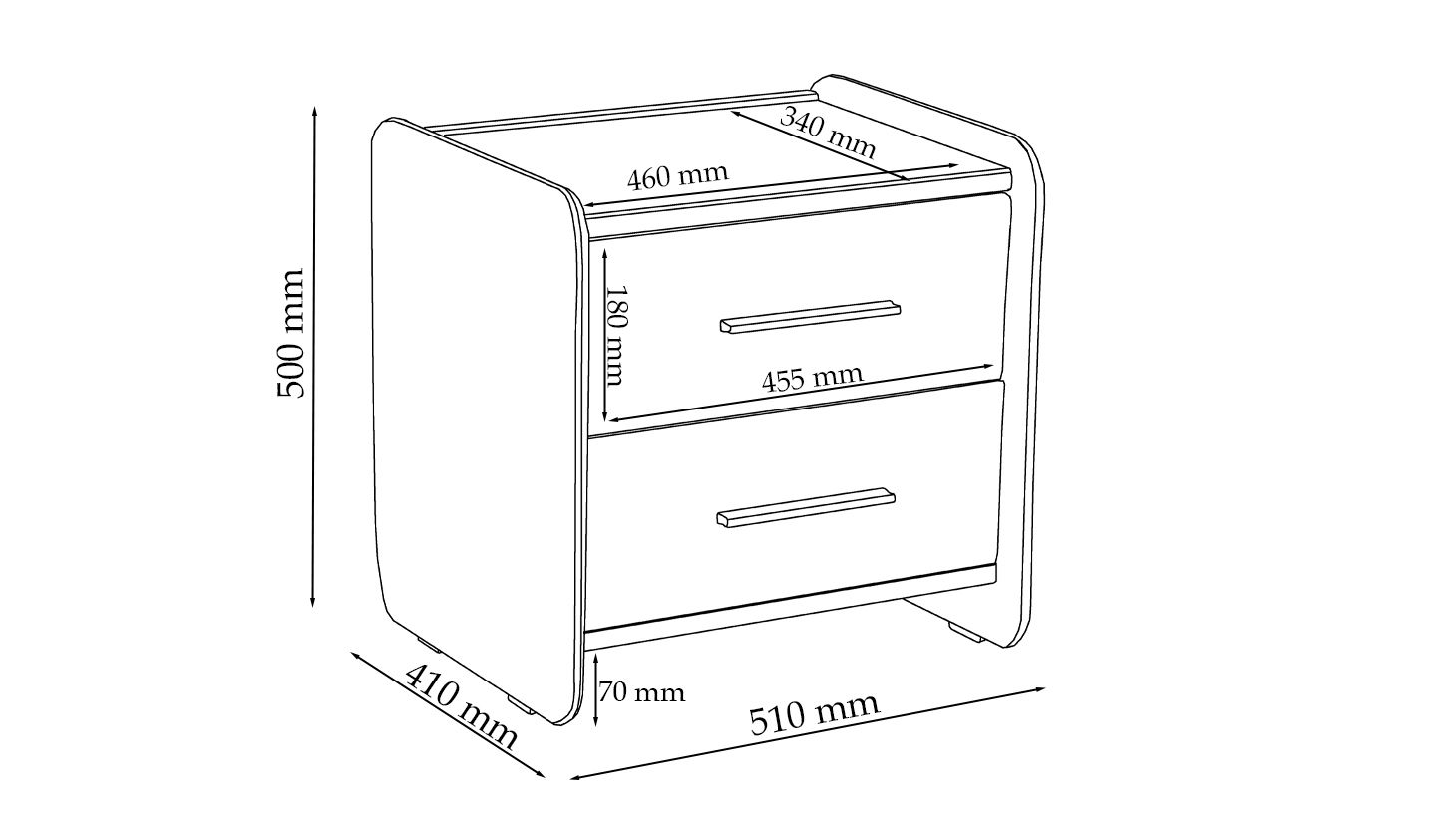 Завдяки наявності двох ящиків тумба Емма забезпечує зручне зберігання особистих речей. Висота ящика всередині становить 15 см.