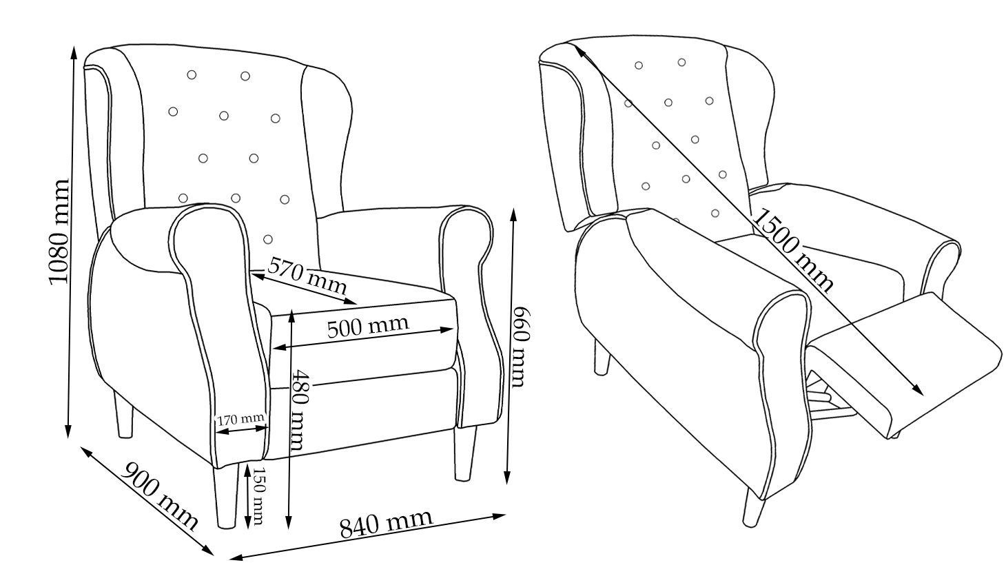 Крісло має механічний реклайнер, щоб привести його в дію необхідно упершись у підлокітники руками спертися на спинку крісла.