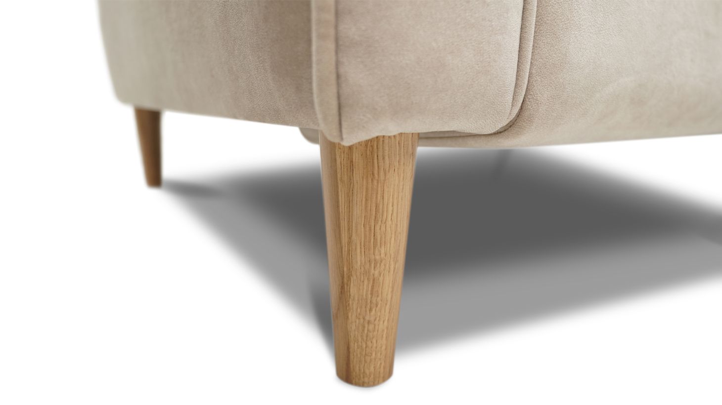 Високі ніжки з натурального дерева ясеня надають кріслу особливий стиль, а також це практичний елемент: під кріслом зможе проїхати робот-пилосос.