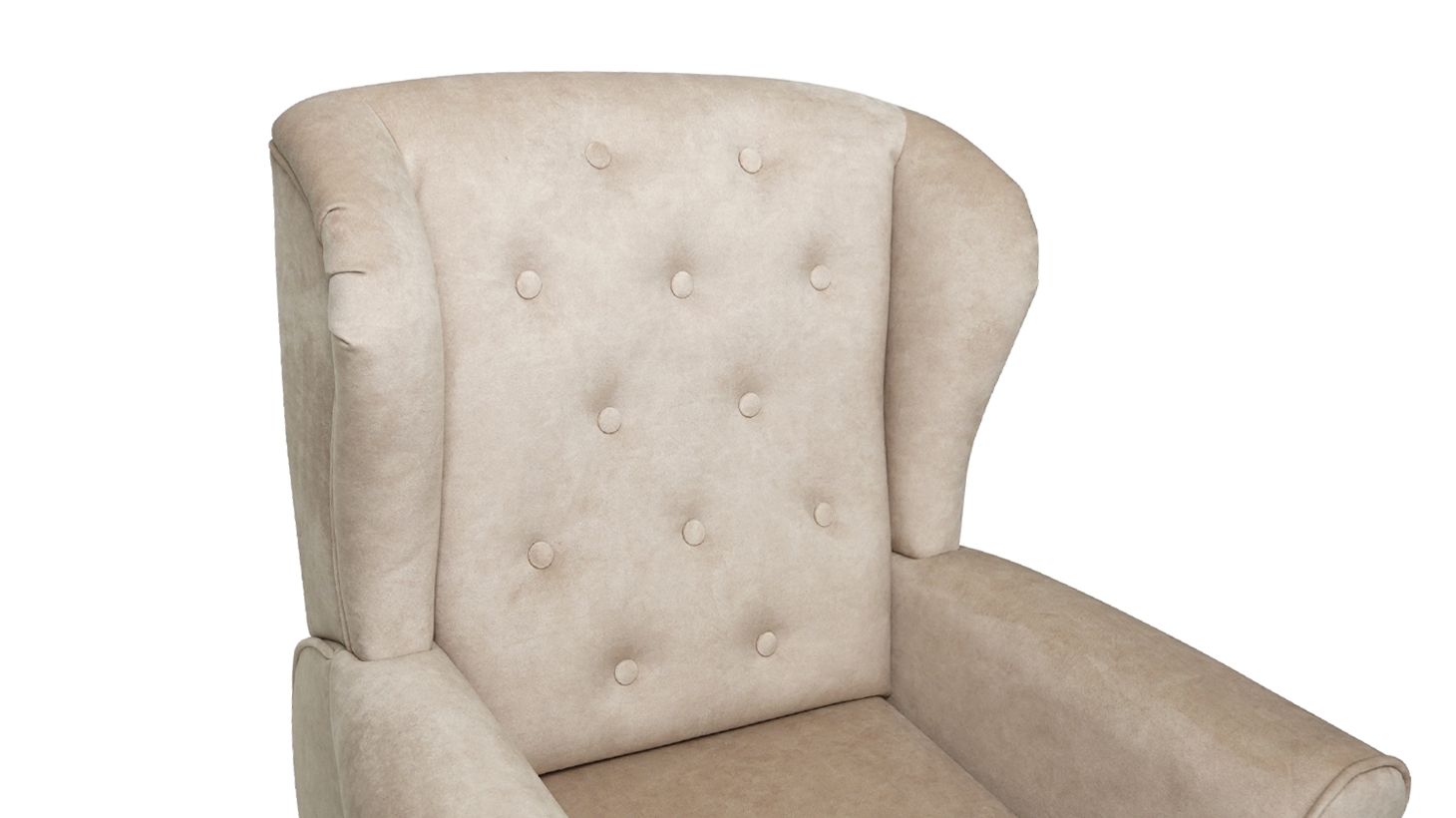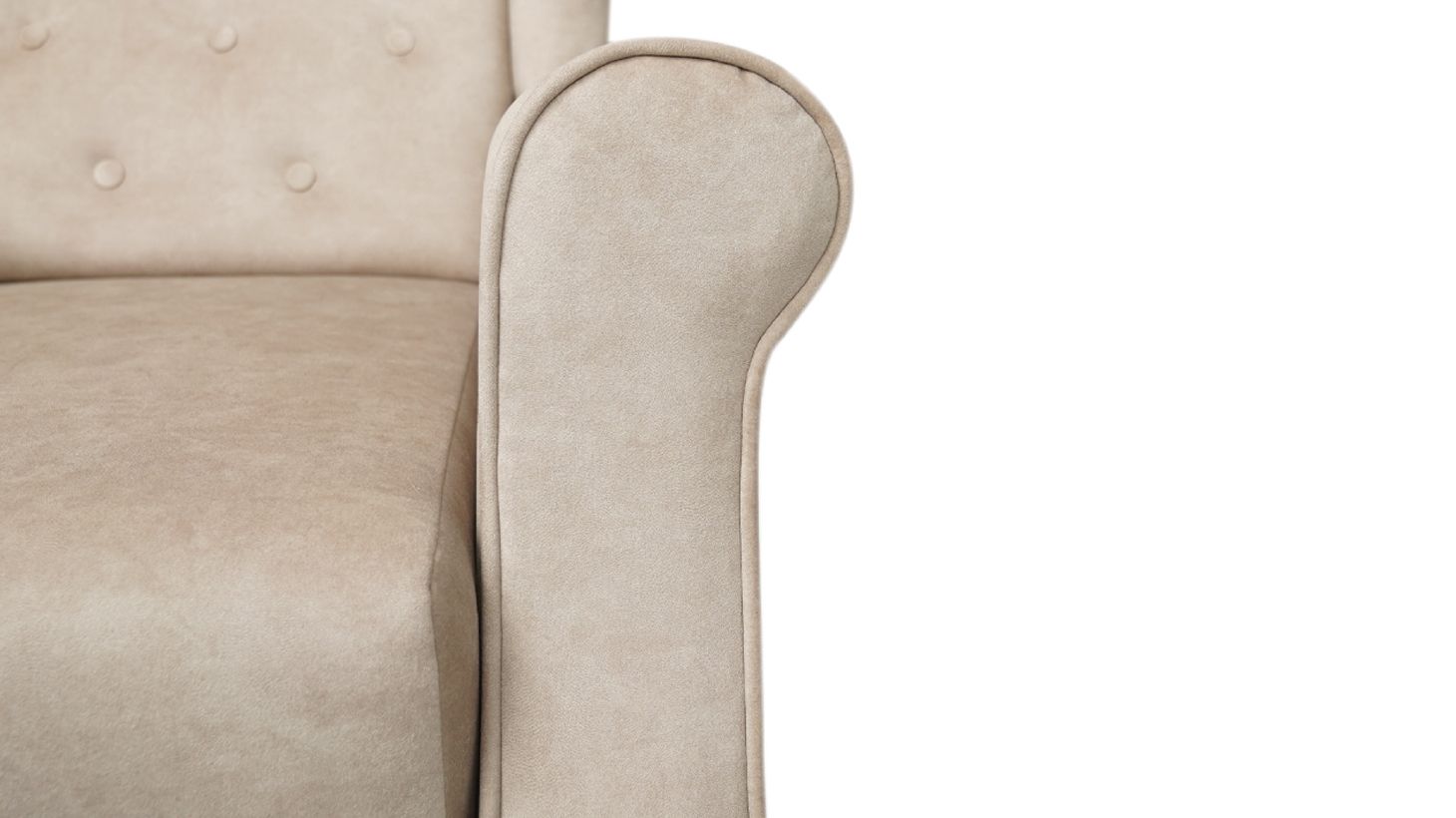 Глибоке сидіння і висока спинка, яка оформлена декоративними гудзиками, дозволять Вам розташуватися на кріслі з особливим комфортом.