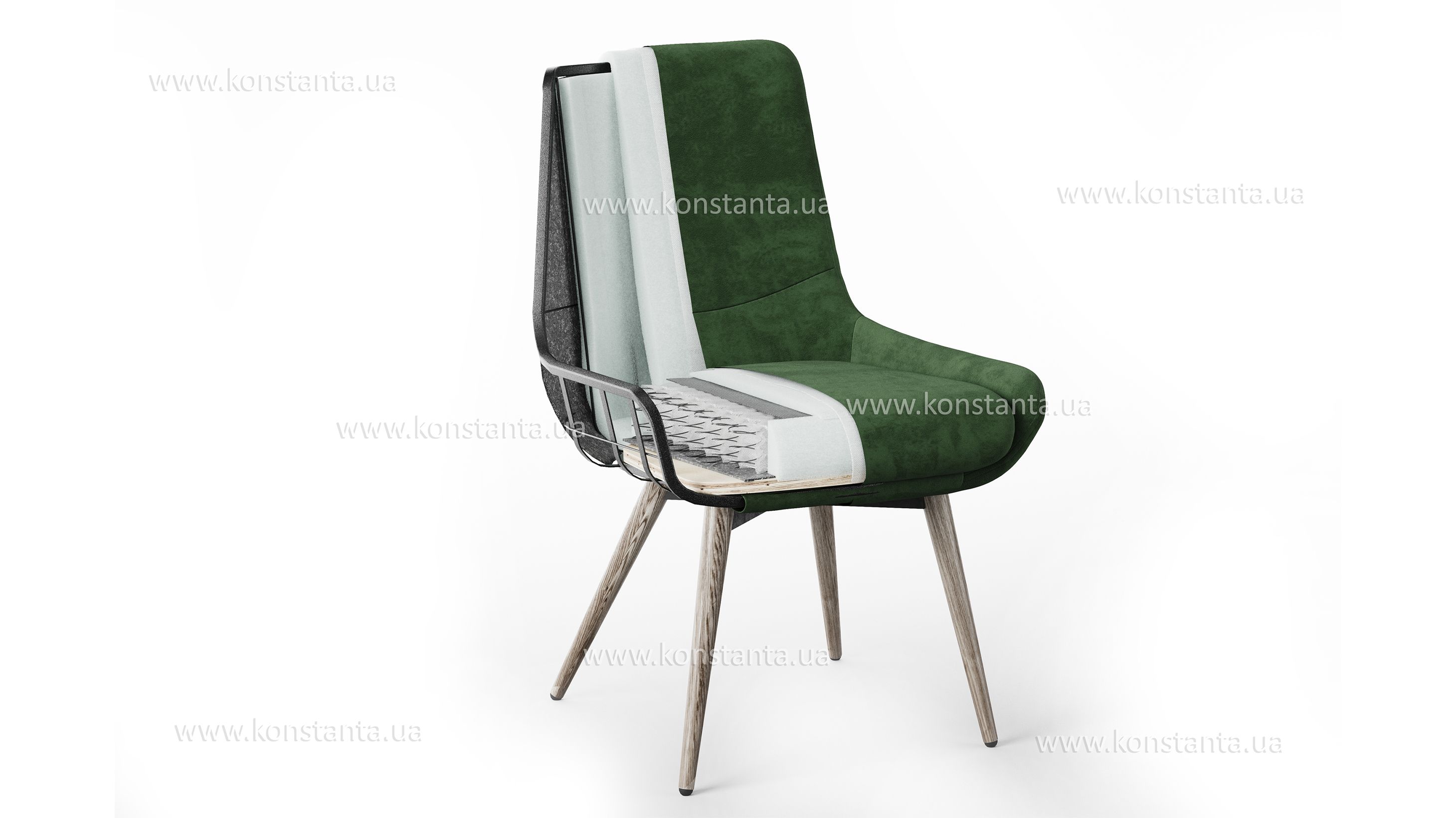 Високі ніжки з натурального ясеня додають кріслу візуальної легкості й елегантності, а також зручні для прибирання роботом-пилососм. Вони доступні у трьох відтінках: горіх, графіт, натуральний під лаком.