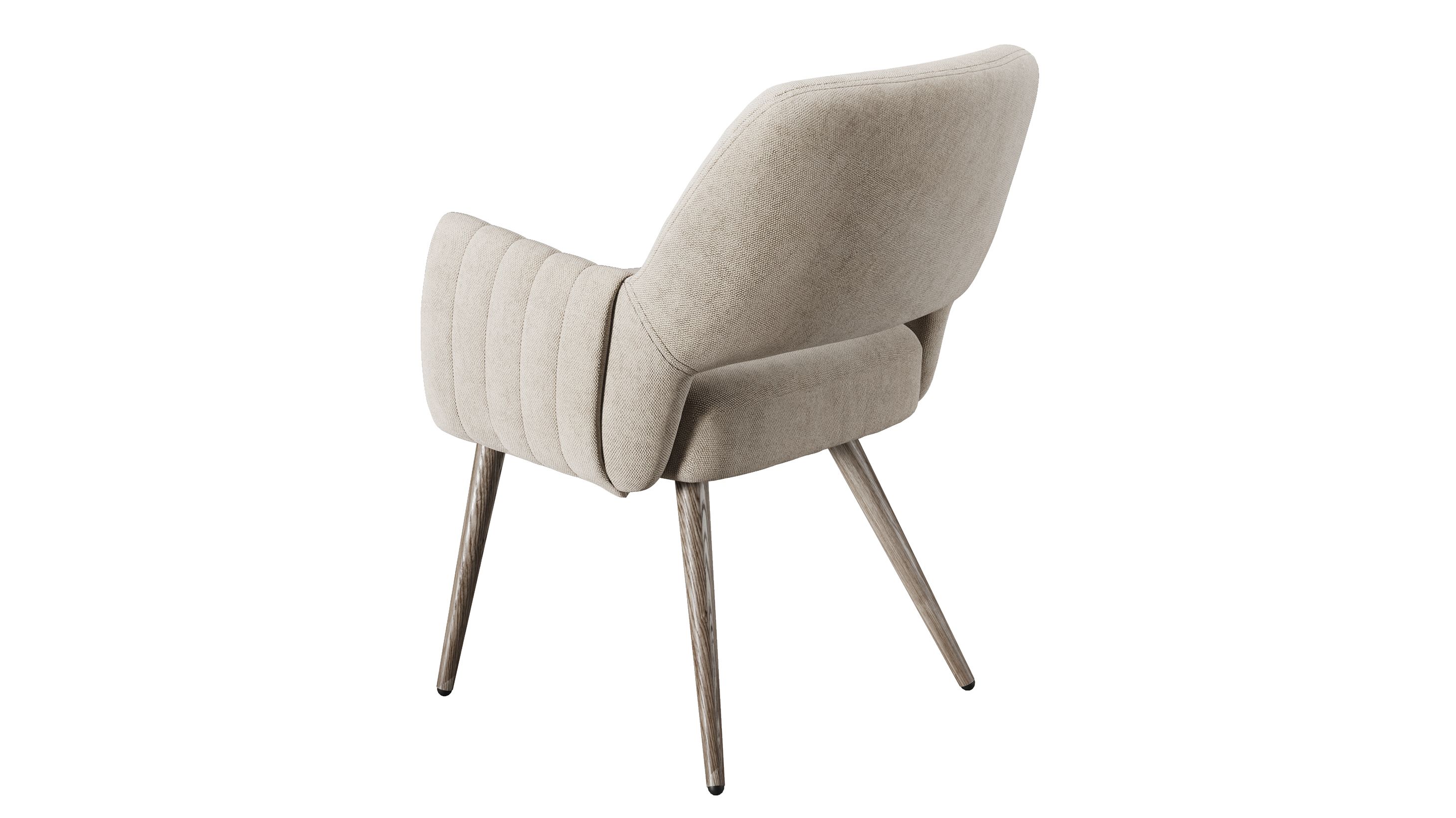 Високі конусні ніжки з натурального ясеня надають кріслу візуальної легкості, підкреслюють витонченість форми й забезпечують відчуття простору. Така висота також практична в повсякденному житті — крісло зручно використовувати з роботом-пилососом, адже під ним достатньо місця для прибирання. Ніжки доступні у трьох стильних відтінках на вибір: натуральний під лаком, горіх, графіт.