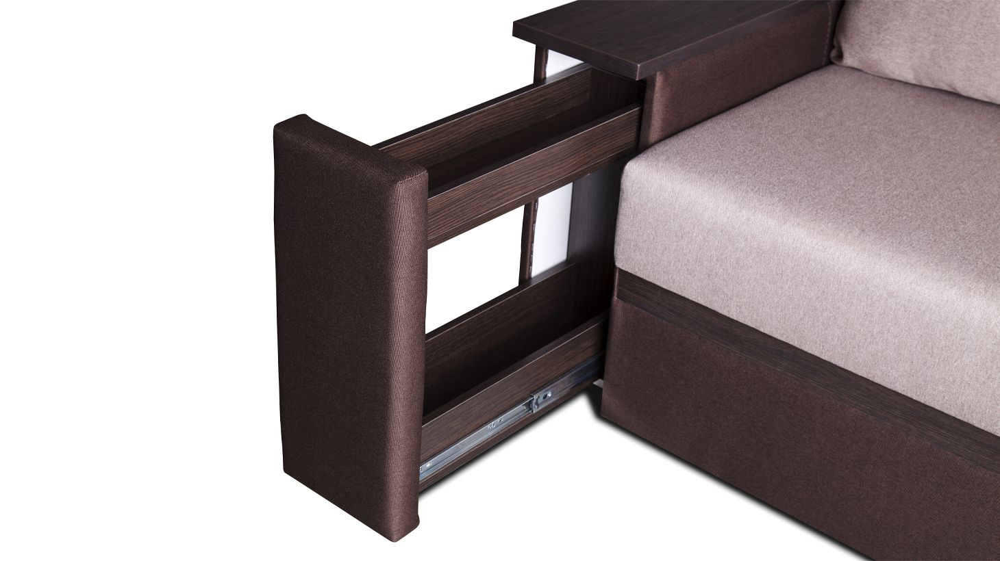 У дивані є містка ніша в кутовій частині, а також ніша в одному з підлокітників і бар в іншому. Все це робить диван Браун дуже зручним в експлуатації.