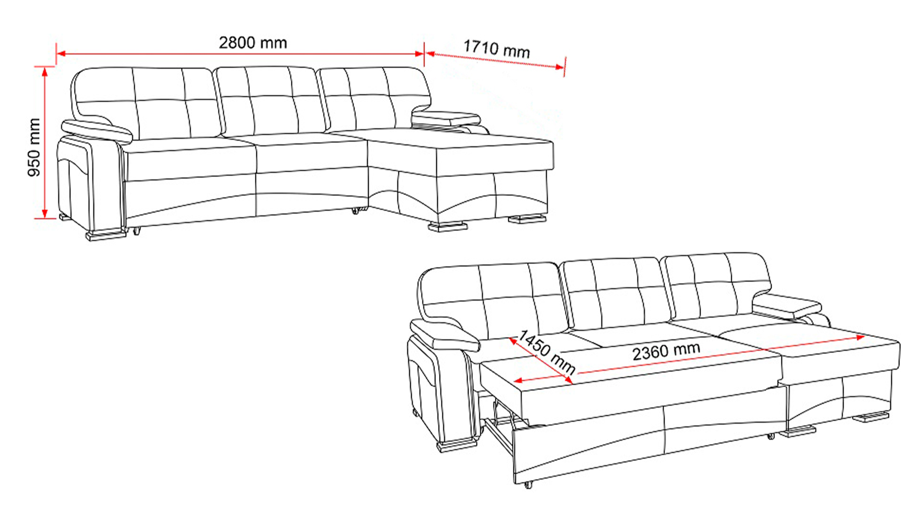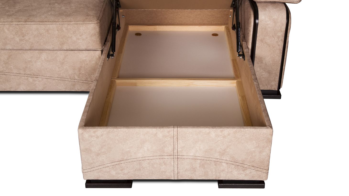 А в кутовій частині дивана передбачено великий і місткий короб для зберігання спальних приладь.