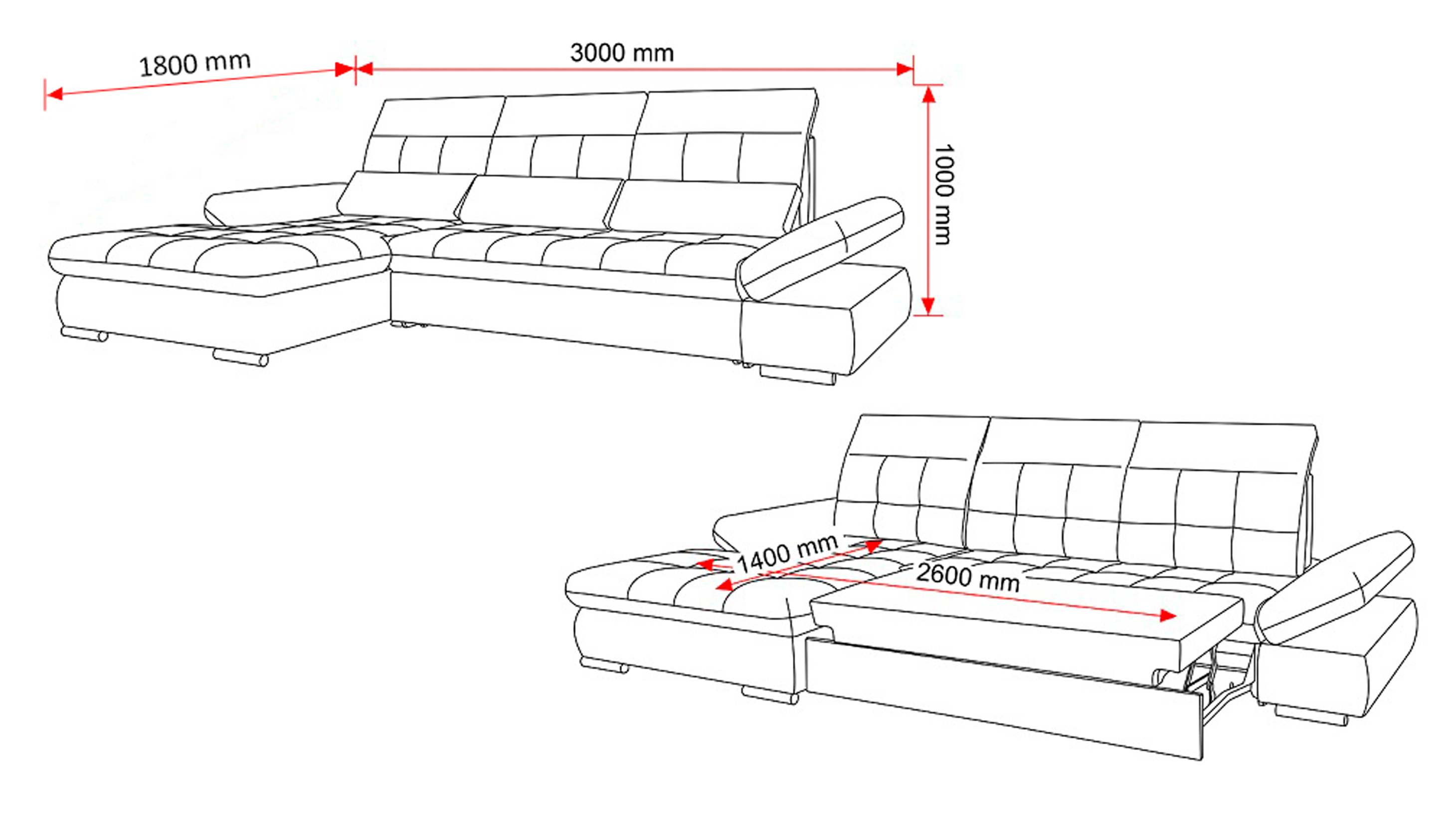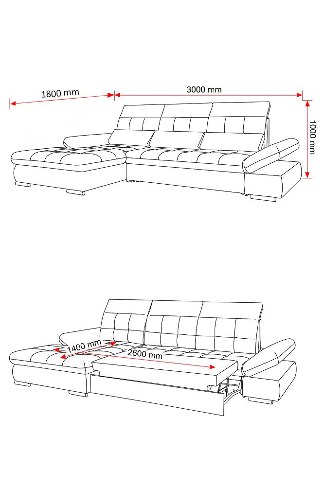 Механізм трансформації Дельфін перетворює цю модель в спальне місце розміром 260 см х 140 см. А білизняний короб дозволяє з користю використовувати місце, яке займає диван.