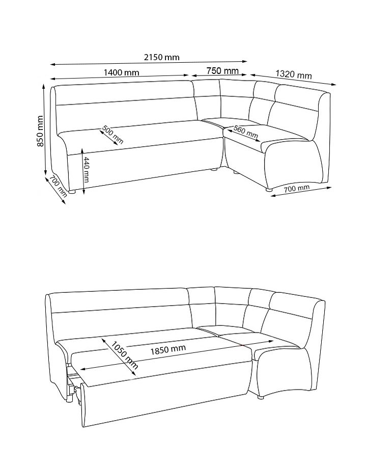 185 см х 105 смКухонний куточок - практичний, зручний і функціональний.