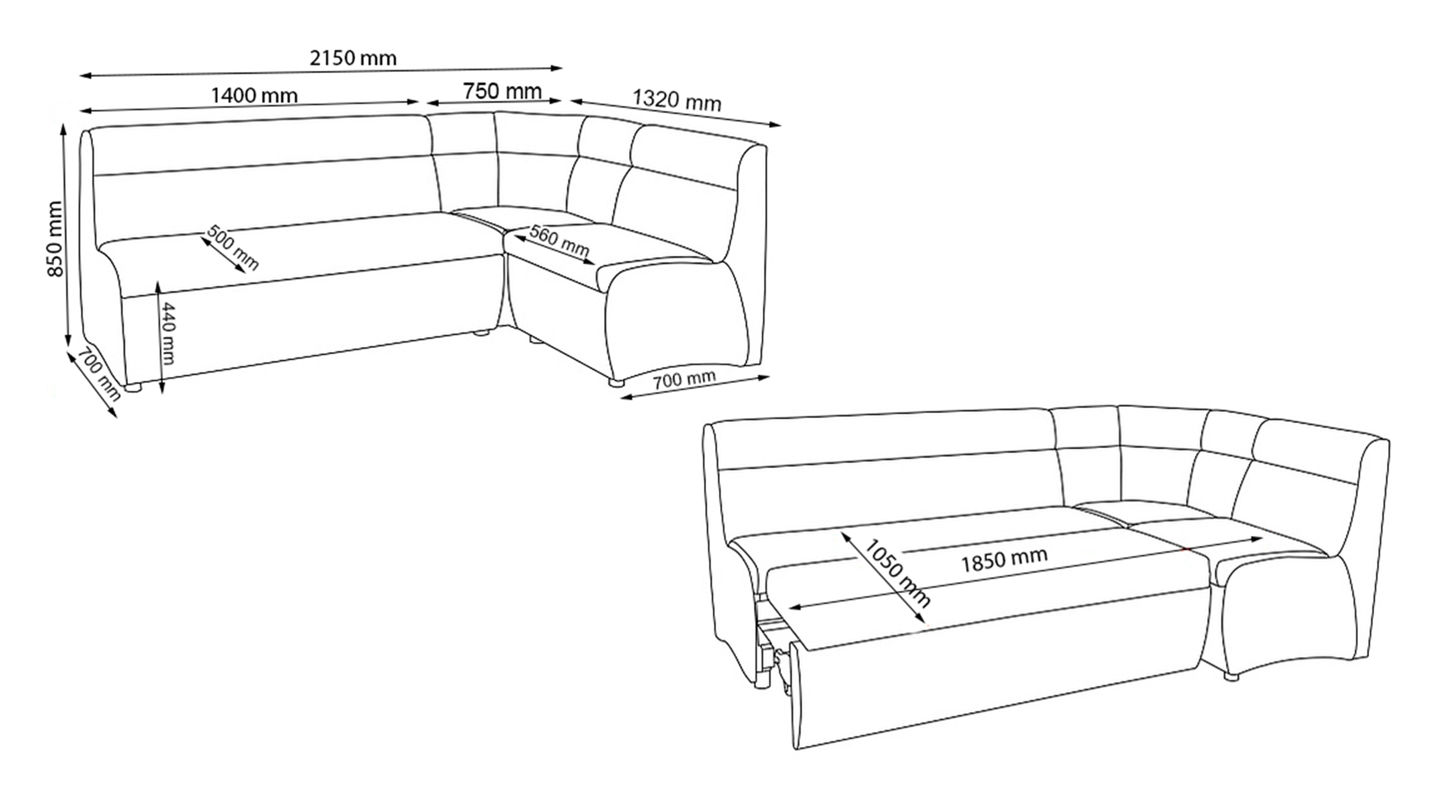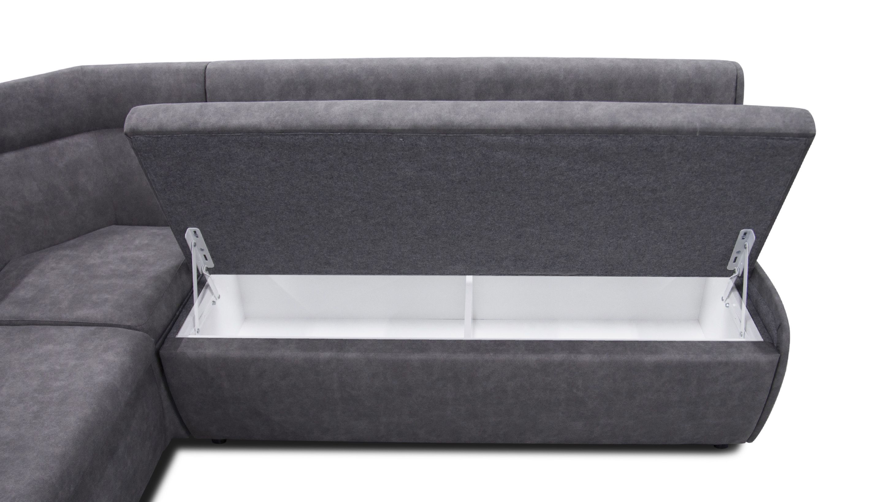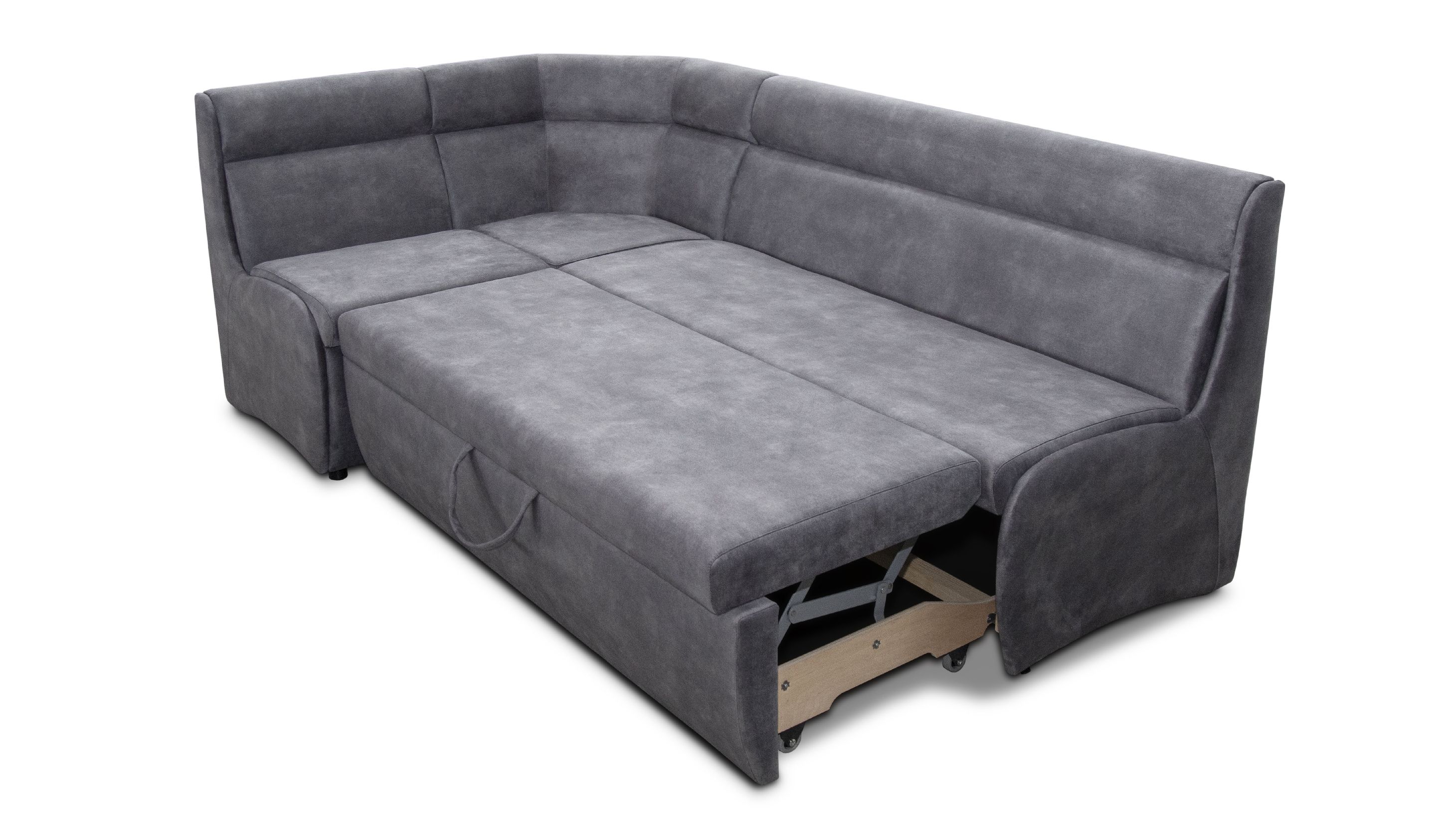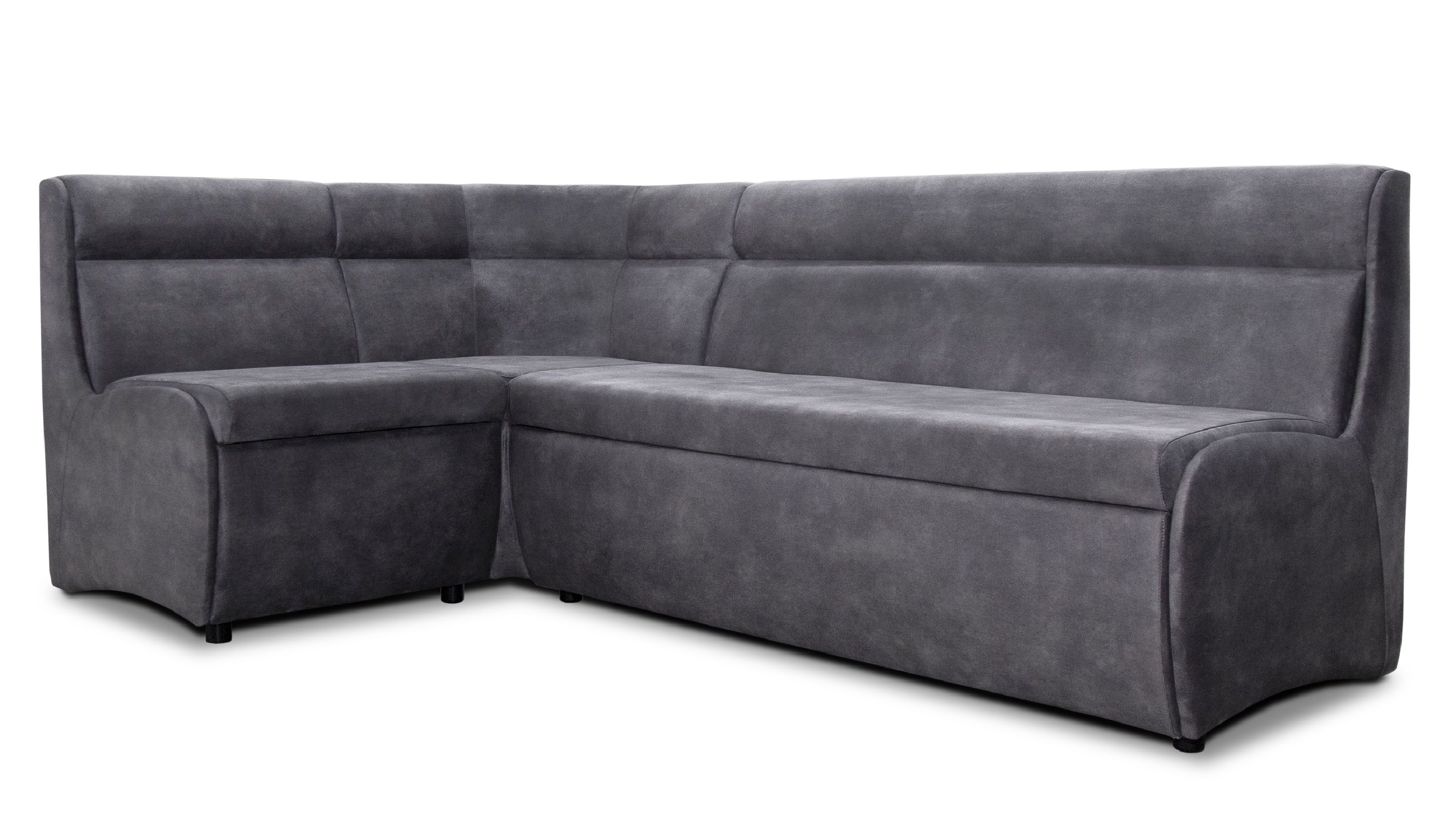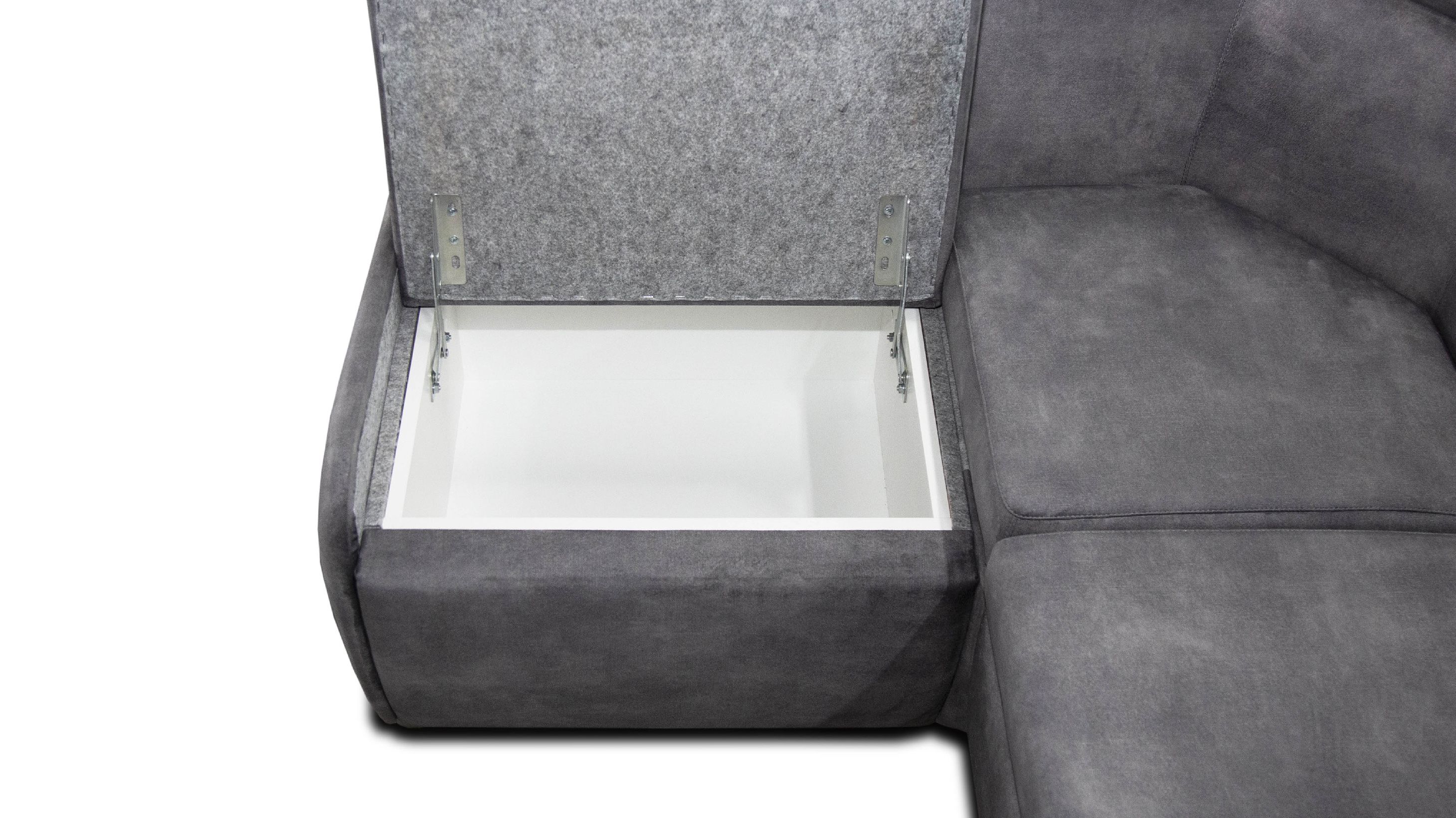 Механізм трансформації "дельфін" дозволяє з легкістю перетворити куточок у зручний, компактний спальне місце розміром 185 х 105 см. Наявність короба з білого ЛДСП дозволяє раціонально використовувати місце, яке займає куточок.