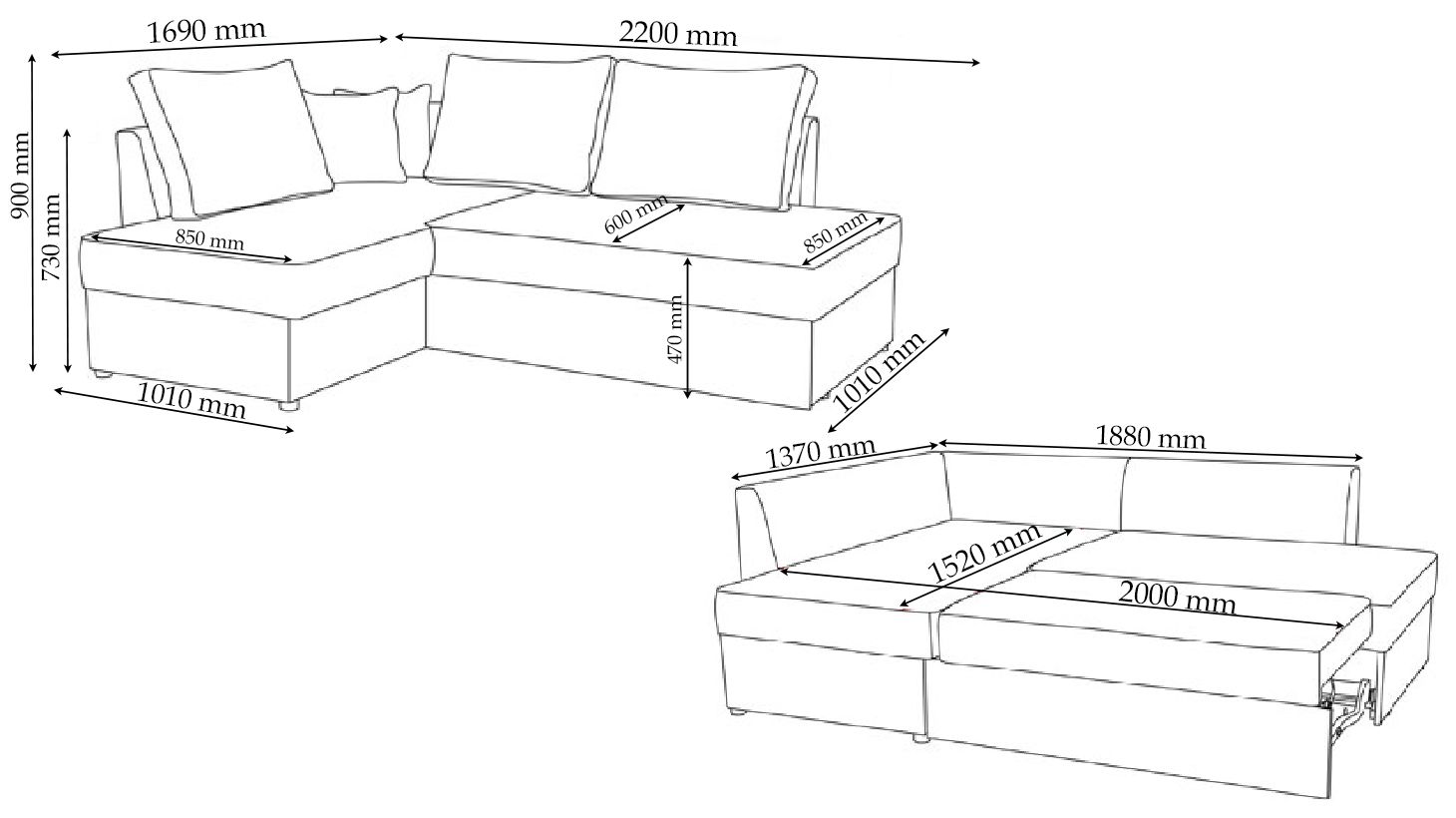 Механізм трансформації "Дельфін" дозволяє з легкістю перетворити диван на зручне ліжко розміром 203 х 152 см. Наявність короба для білизни з білого ЛДСП для постільних речей дозволяє раціонально використовувати місце, яке займає диван.