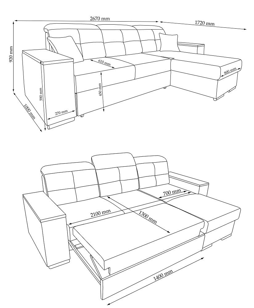 За допомогою механізму трансформації Дельфін кутовий диван Тім за декілька секунд перетворюється в повноцінне місце для сну розміром 130 см х 210 см.