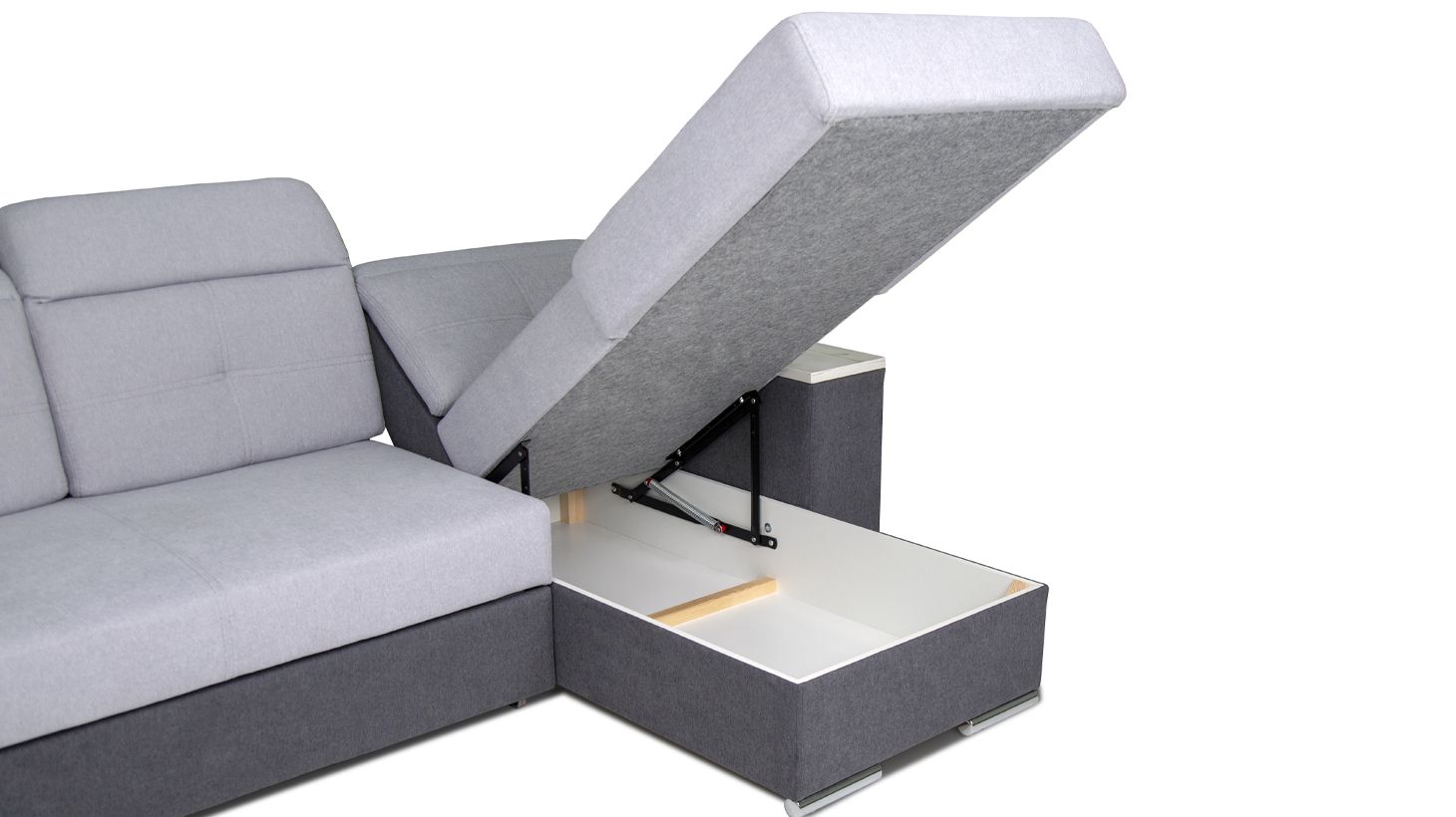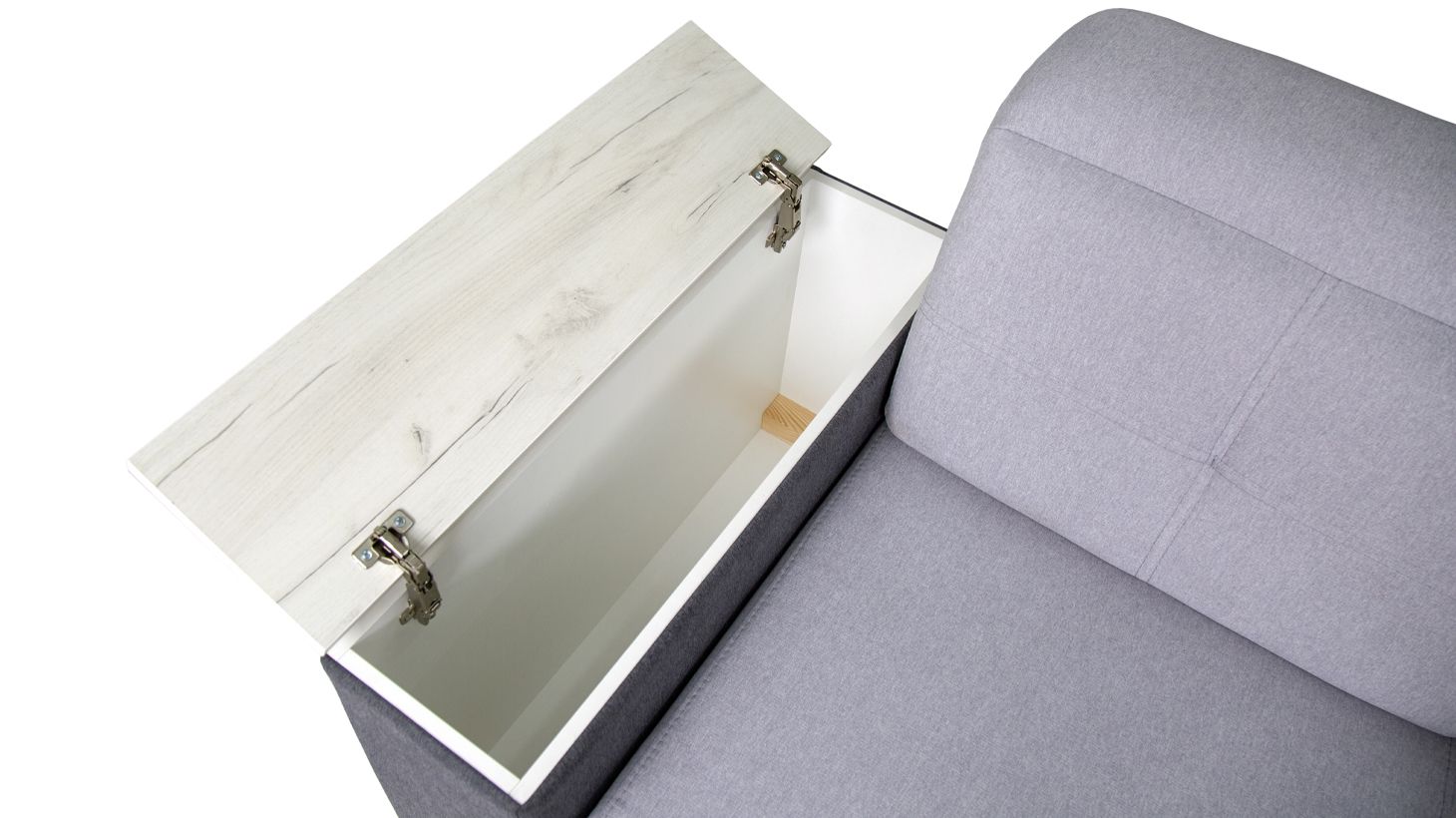 Додатковим бонусом є наявність трьох білизняних коробів: в кутовій частині дивана є великий ящик, а так само в двох бочках за замовчуванням передбачені ніші.