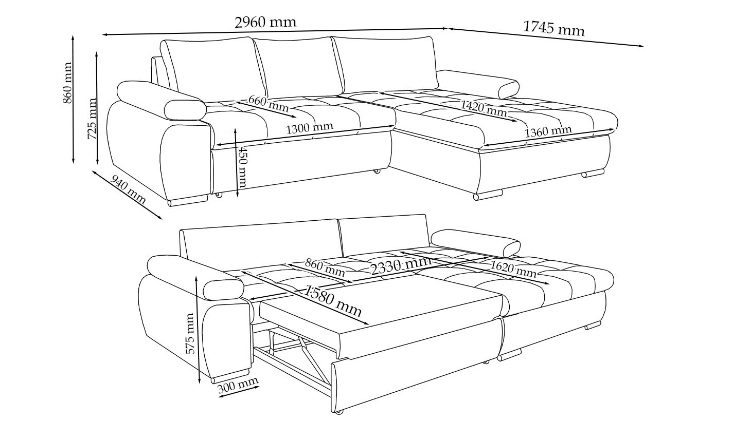 У кутовій частині дивана є додатковий бонус: місткий короб, в якому можна зберігати постільні речі та інші речі.