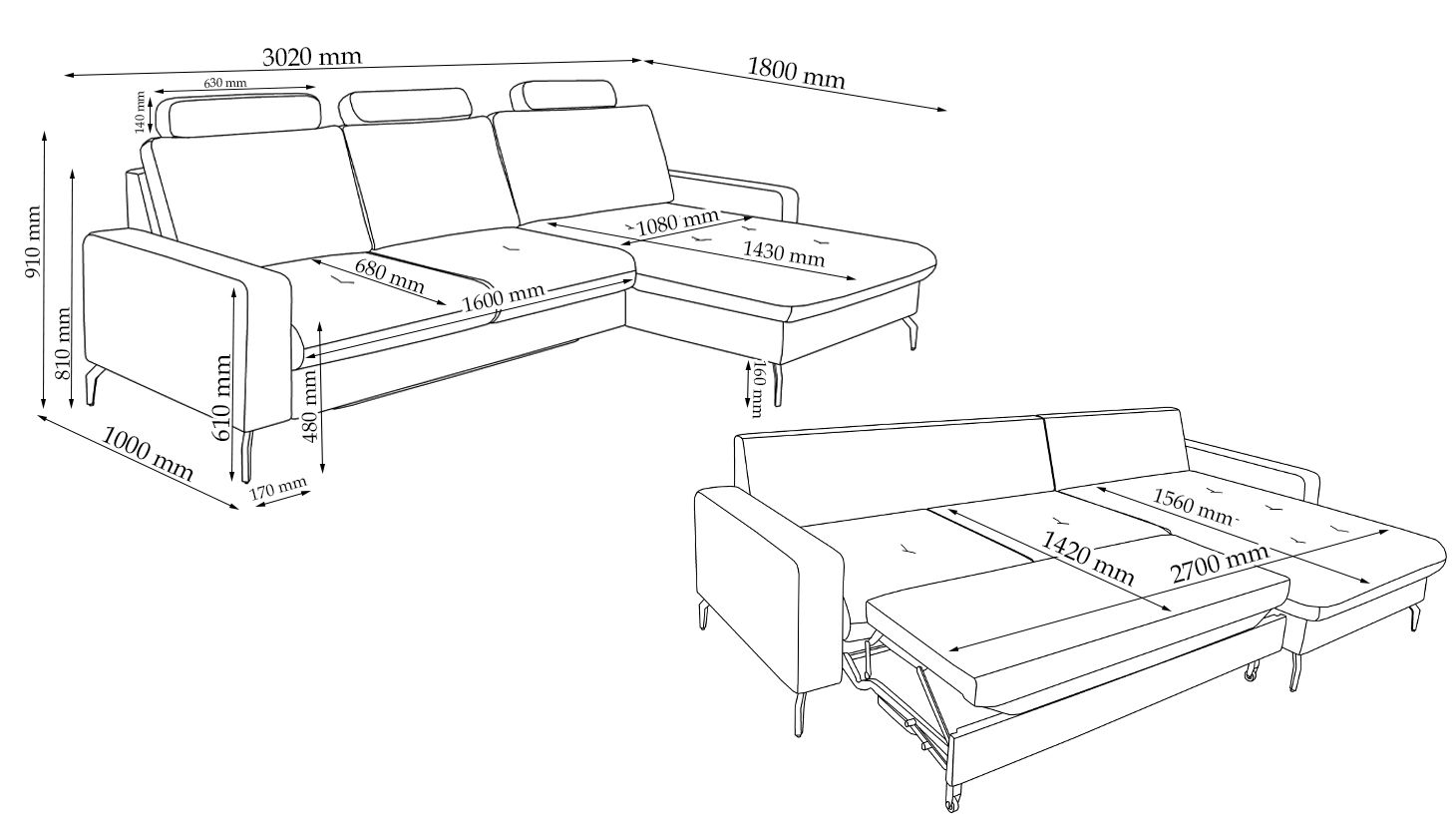 Кутовий диван Брістоль оснащено механізмом трансформації Дельфін, усього декілька рухів та диван перетворюється на повноцінне спальне місце.