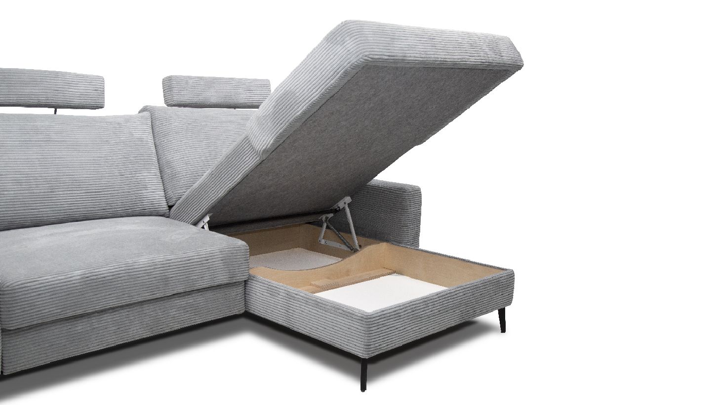 У кутовій частині дивана є додатковий бонус у вигляді коробки для зберігання різних речей. Це зручне рішення для збереження предметів під рукою, але при цьому поза видимістю.