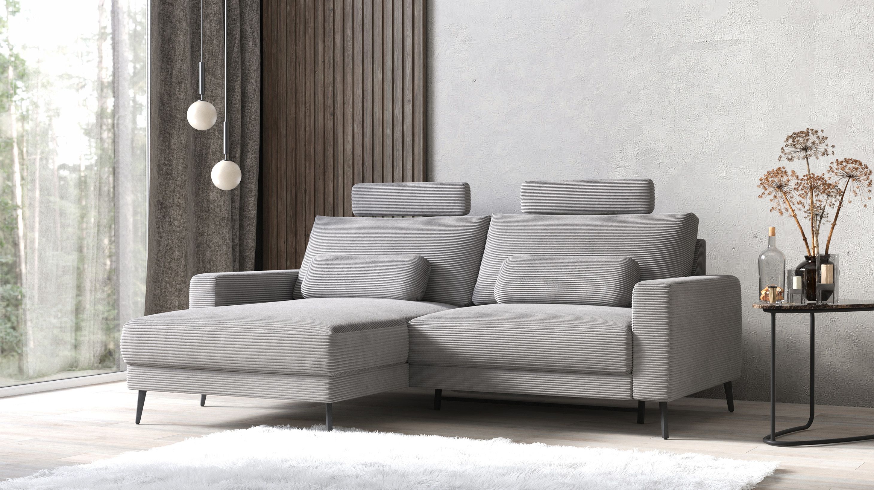 Додатково комплектується незакріпленими подушками та підголівникамиКутовий диван Тіват - сучасна елегантність та комфорт в одному виробі.