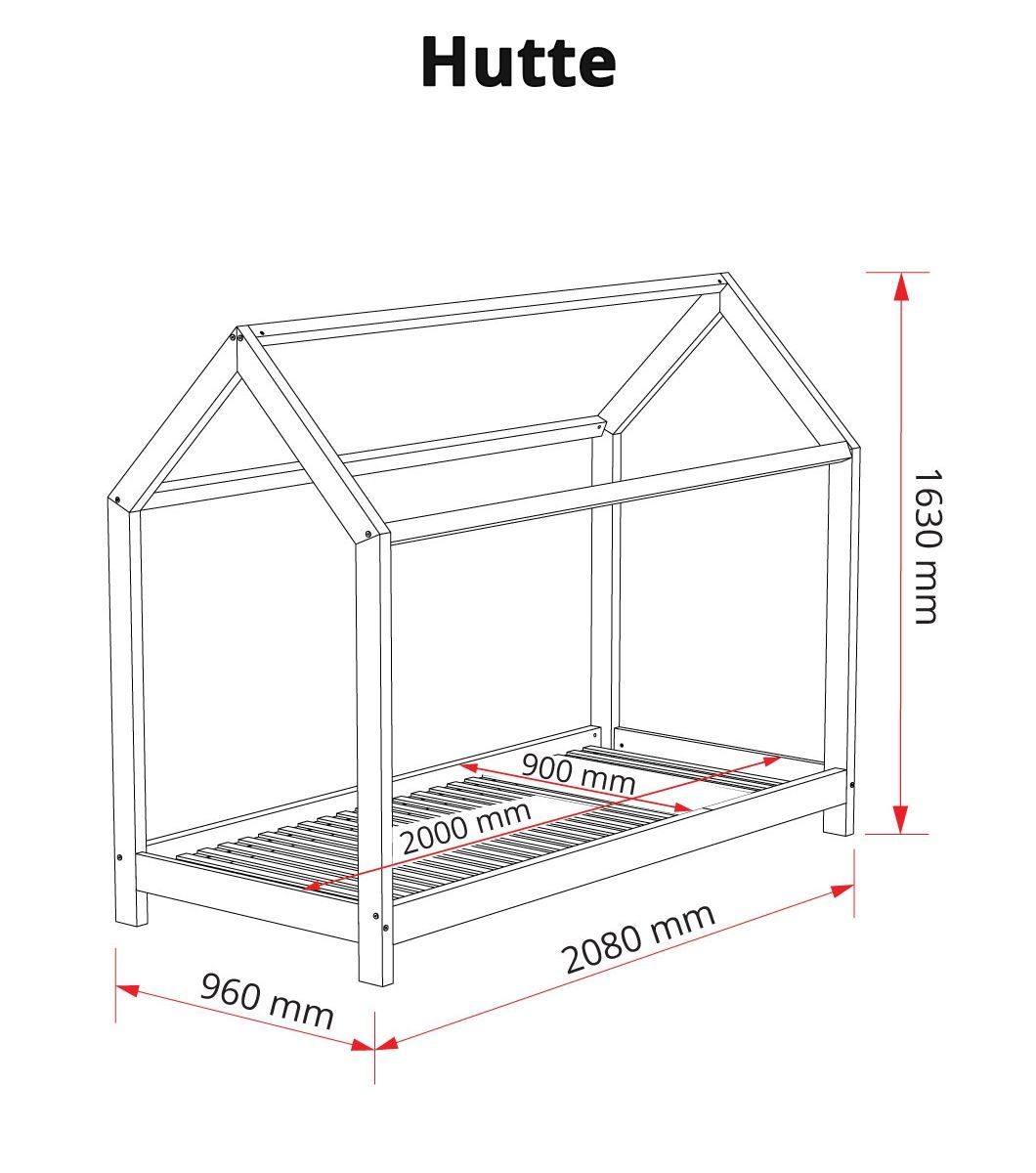 У підставі ліжка букові ламеліПростий дизайн ліжка «Hütte» робить його універсальною моделлю, яка прекрасно підійде для всіх типів дитячих спалень. Ліжко можливо прикрасити будь-якими типами декорацій і текстилю