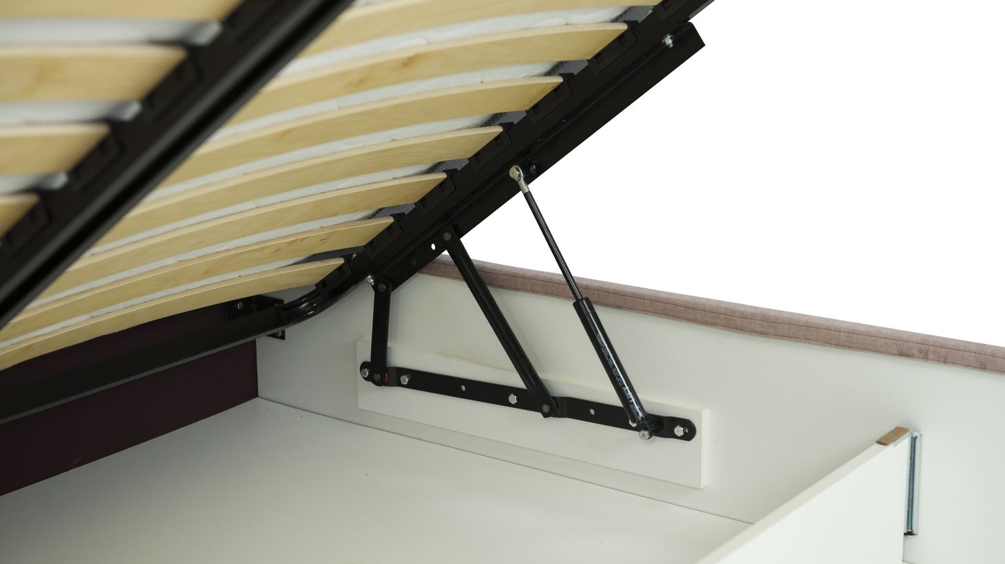 У підставі ліжка знаходиться містка і простора ніша, яка прекрасно підходить для зберігання речей, постільної білизни, ковдри. Завдяки складному механізму з газліфта, опускання і підйом спального місця відбувається без зусиль.