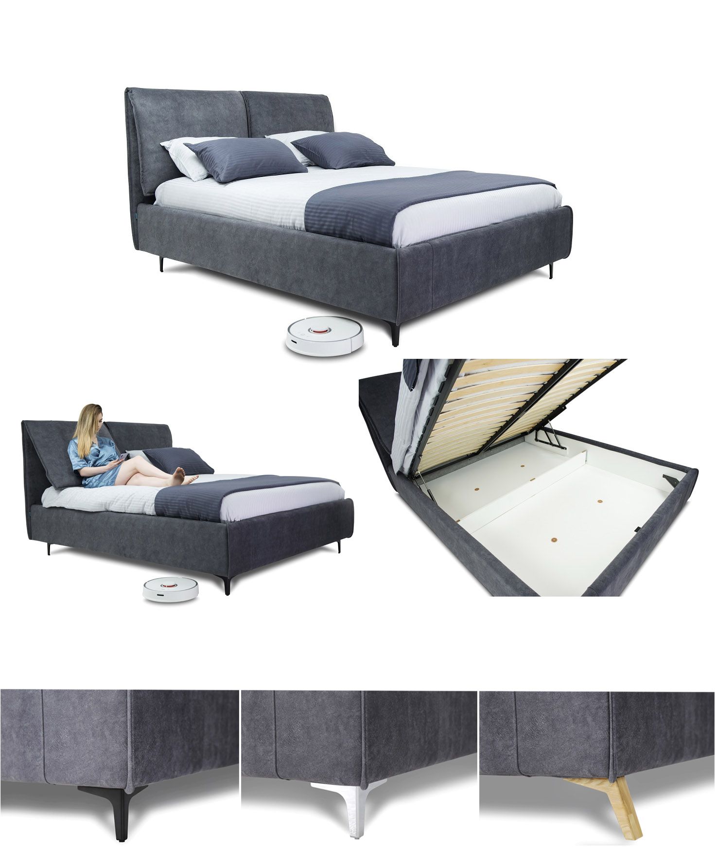 Оновлені ніжки надають ліжку ще більше стилю та зручності. Висота ніжок 13 см, що дозволяє вільно пересуватися під ліжком роботам-пилососам.