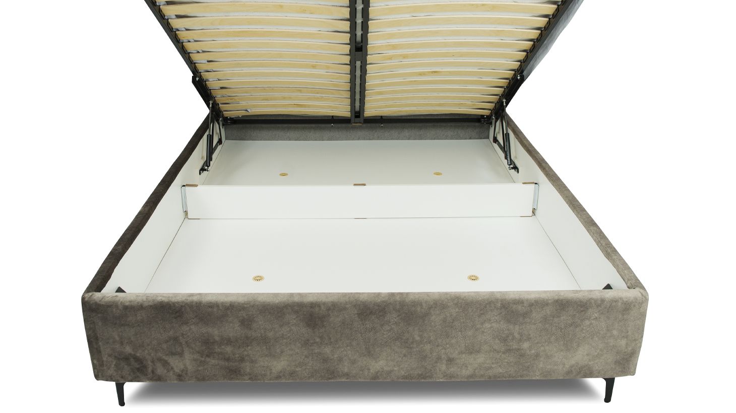 У підставі ліжка знаходиться містка і простора ніша для білизни та інших спальних приладь.