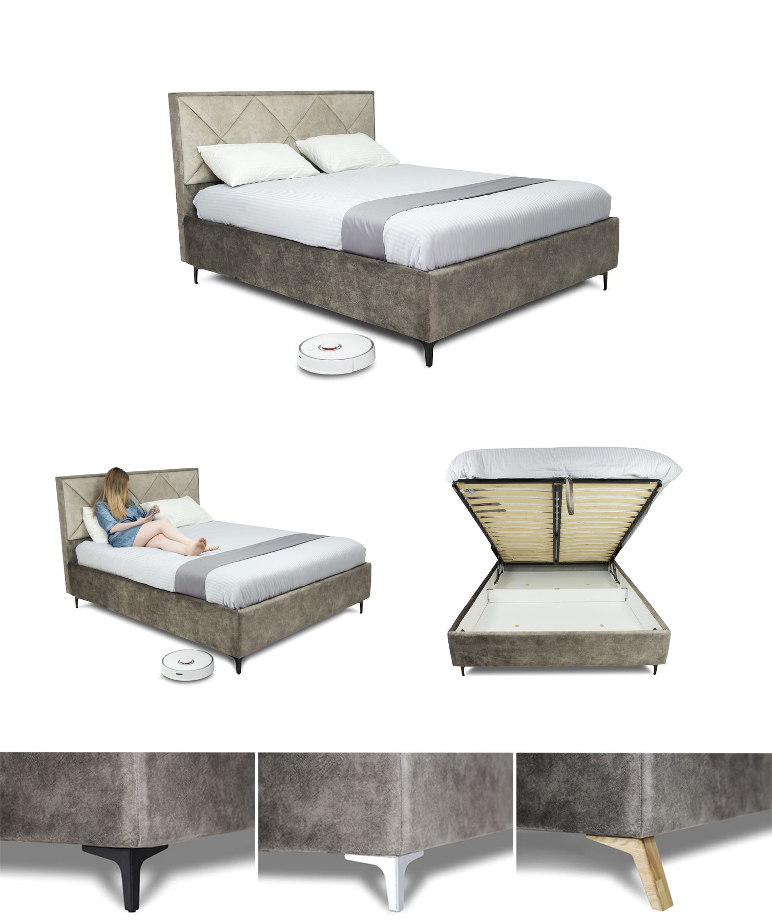 У оновленому варіанті ліжко Ніколь, завдяки оригінальним ніжкам, підведено на 13 см. Тепер Ви без зусиль зможете зробити прибирання під ліжком, а також там вистачить місця для вільного переміщення смарт-пилососа.