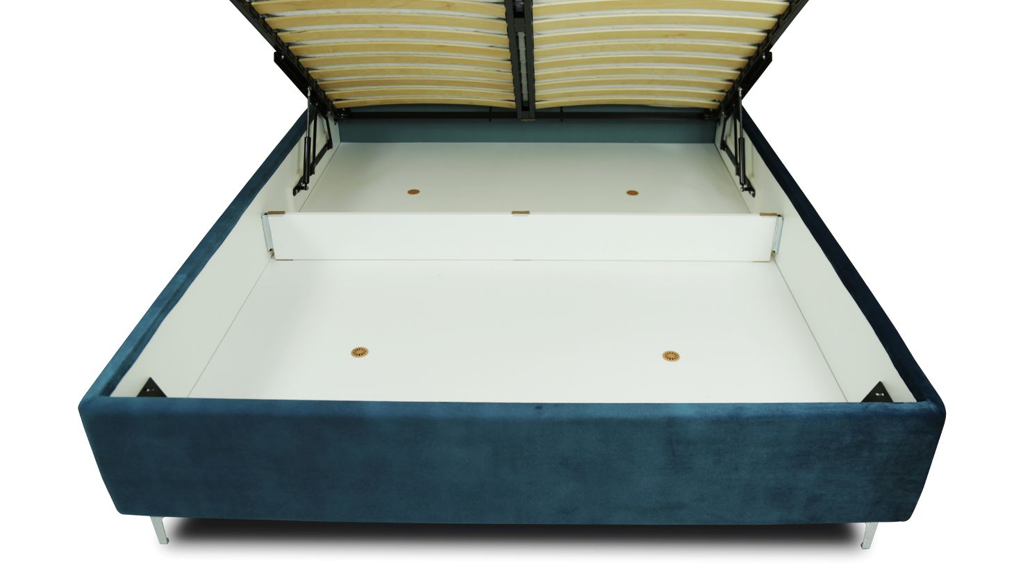 У підставі ліжка знаходиться містка і простора ніша, яка прекрасно підходить для зберігання речей, постільної білизни, ковдри. Завдяки складному механізму з газліфта, опускання і підйом спального місця відбувається без зусиль.