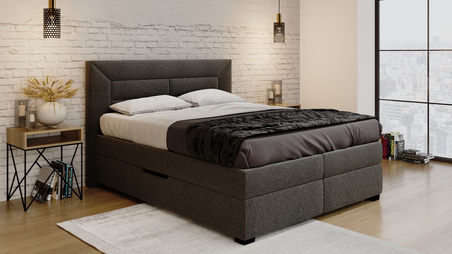 Особливість цієї моделі полягає в наявності двох містких ніш на підйомних механізмах з газліфтами, які спрощують доступ до ящиків. Це дуже практично й зручно, адже два ящика дозволять вам з ще більшим комфортом розмістити речі и значно заощадити простір кімнати.
