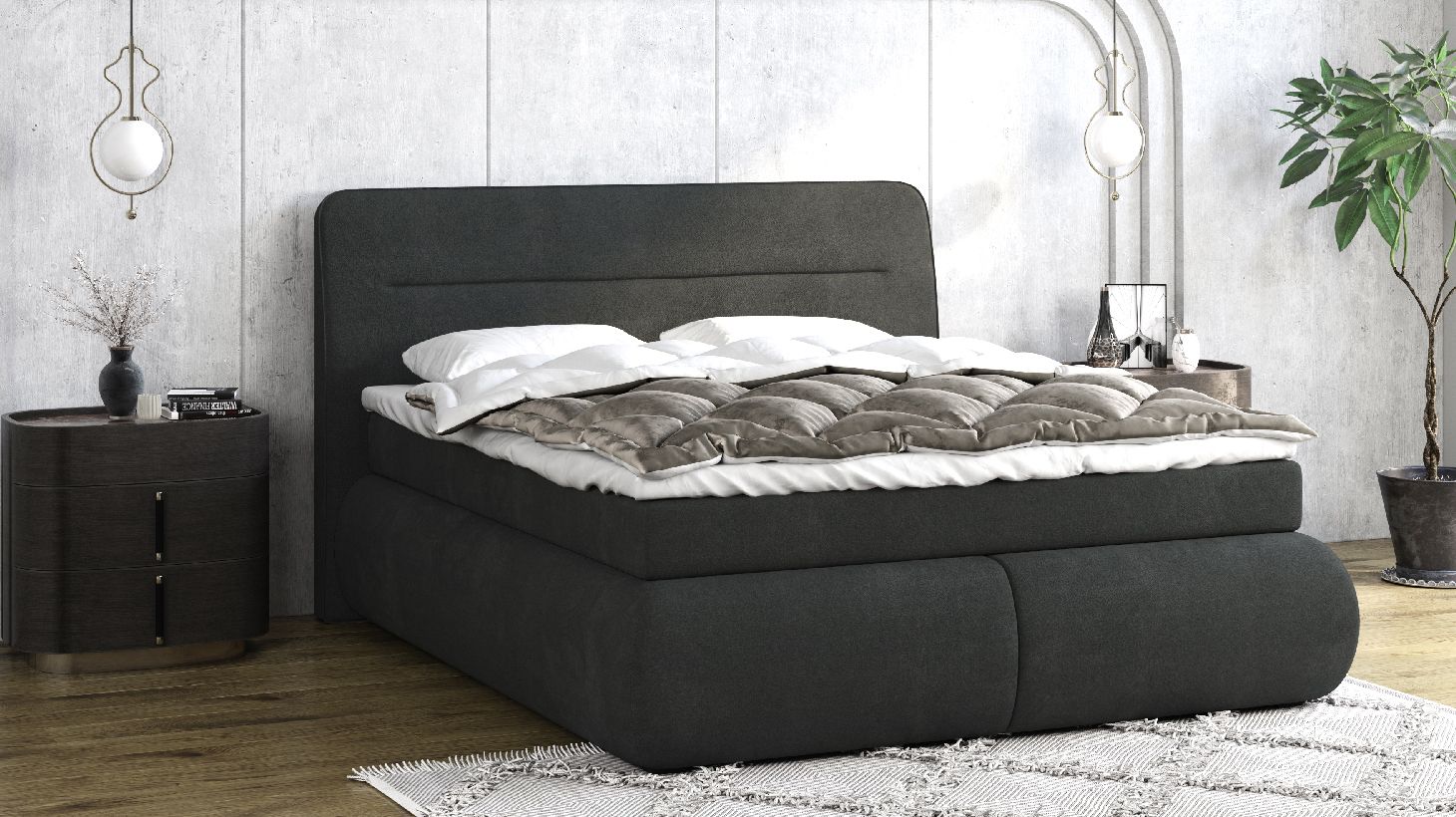 Горизонтальна утяжка та кант на узголів'ї підкреслює об'ємні форми цієї моделі та надають особливого затишку.
