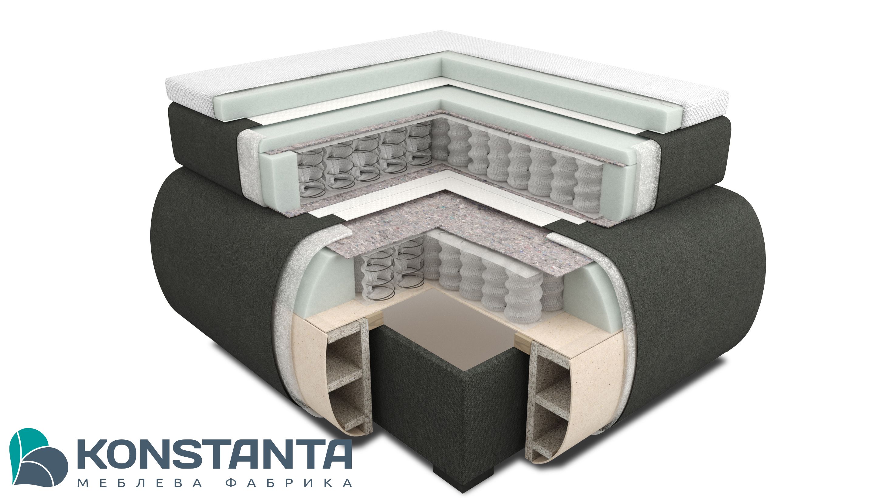 Головна особливість ліжка Белла - це наявність вбудованного матрацу з блоком незалежних пружин Pocket Spring, зверху якого розміщено ще додатковий матрац-топпер з поролону.