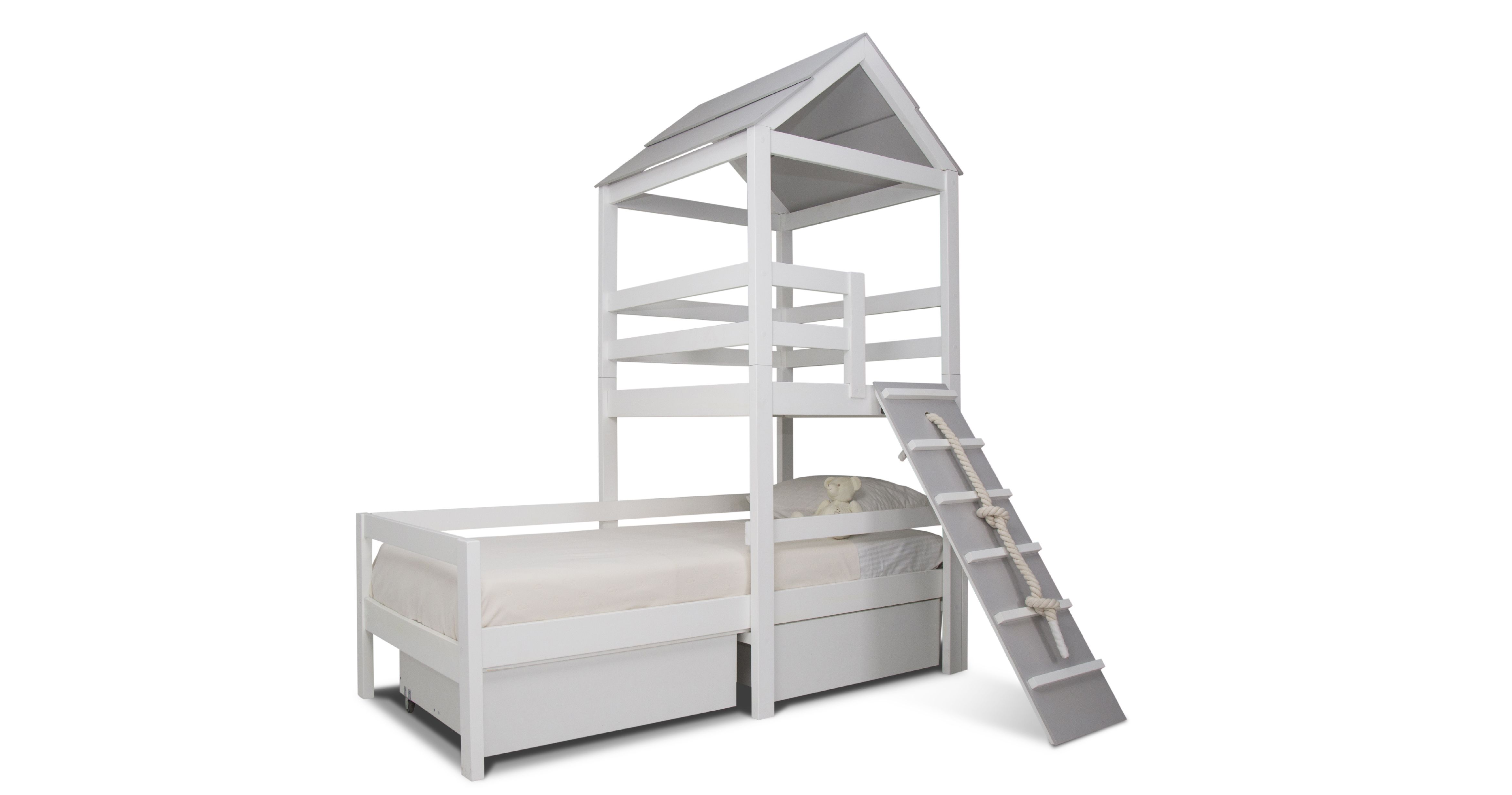 Ліжко з вежею допоможе створити не тільки унікальне місце для сну, а й відмінне місце для ігор.