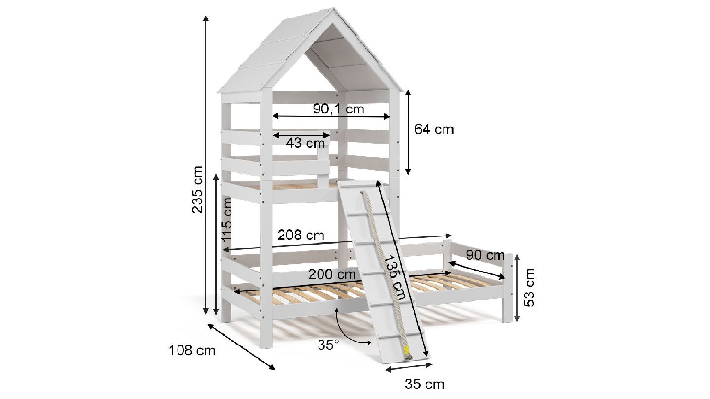 Вежа з трапом і канатом відкриває для дитини абсолютно новий фантастичний світ, який можна оформити за своїм бажанням.