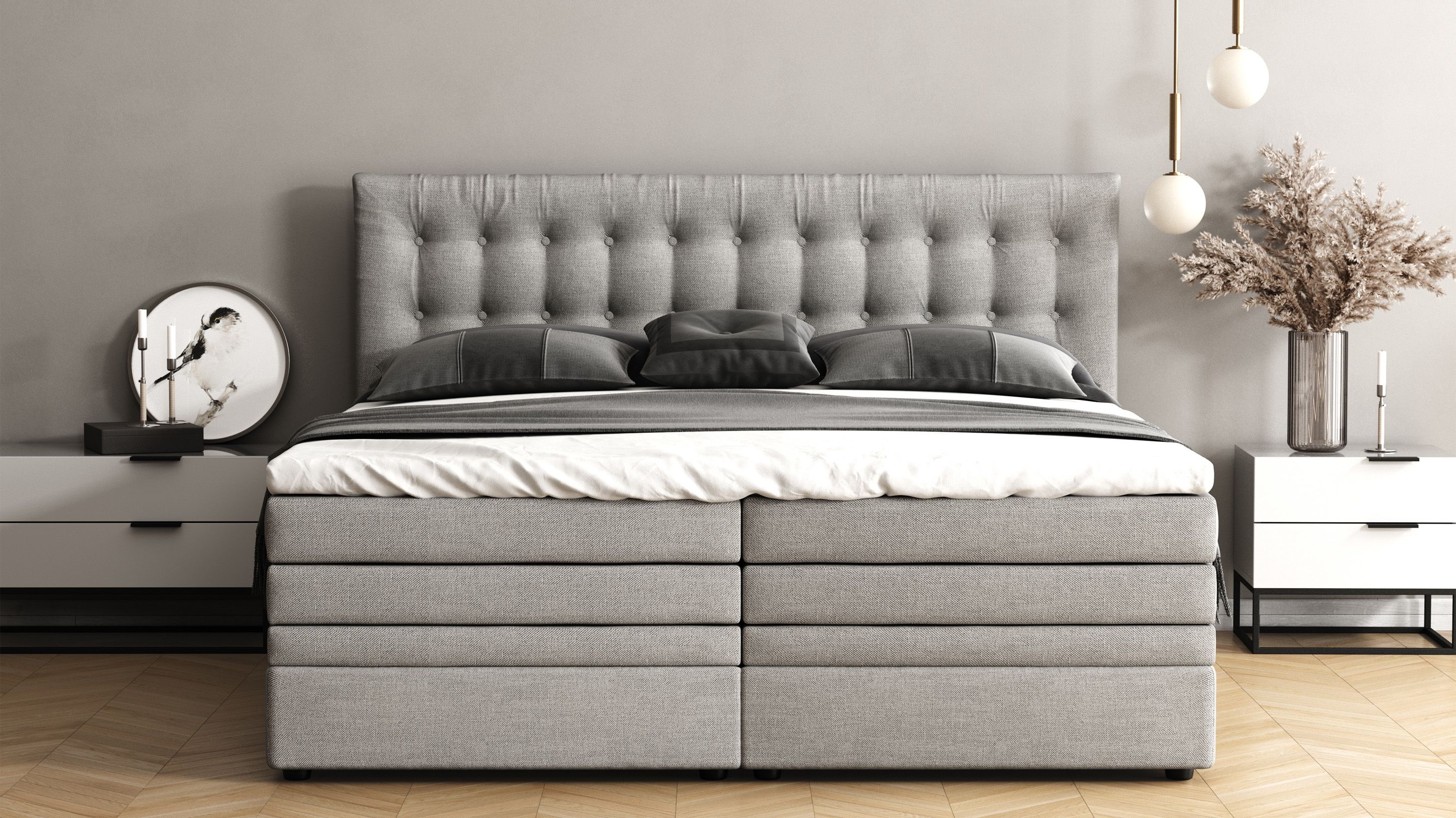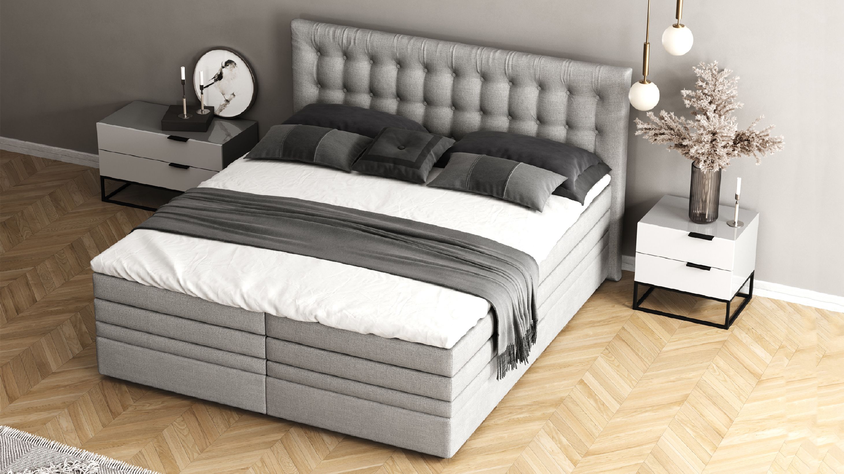Високе узголів'я з декоративними гудзиками створить атмосферу затишку та розкоші та надасть вашій спальні елегантного вигляду.
