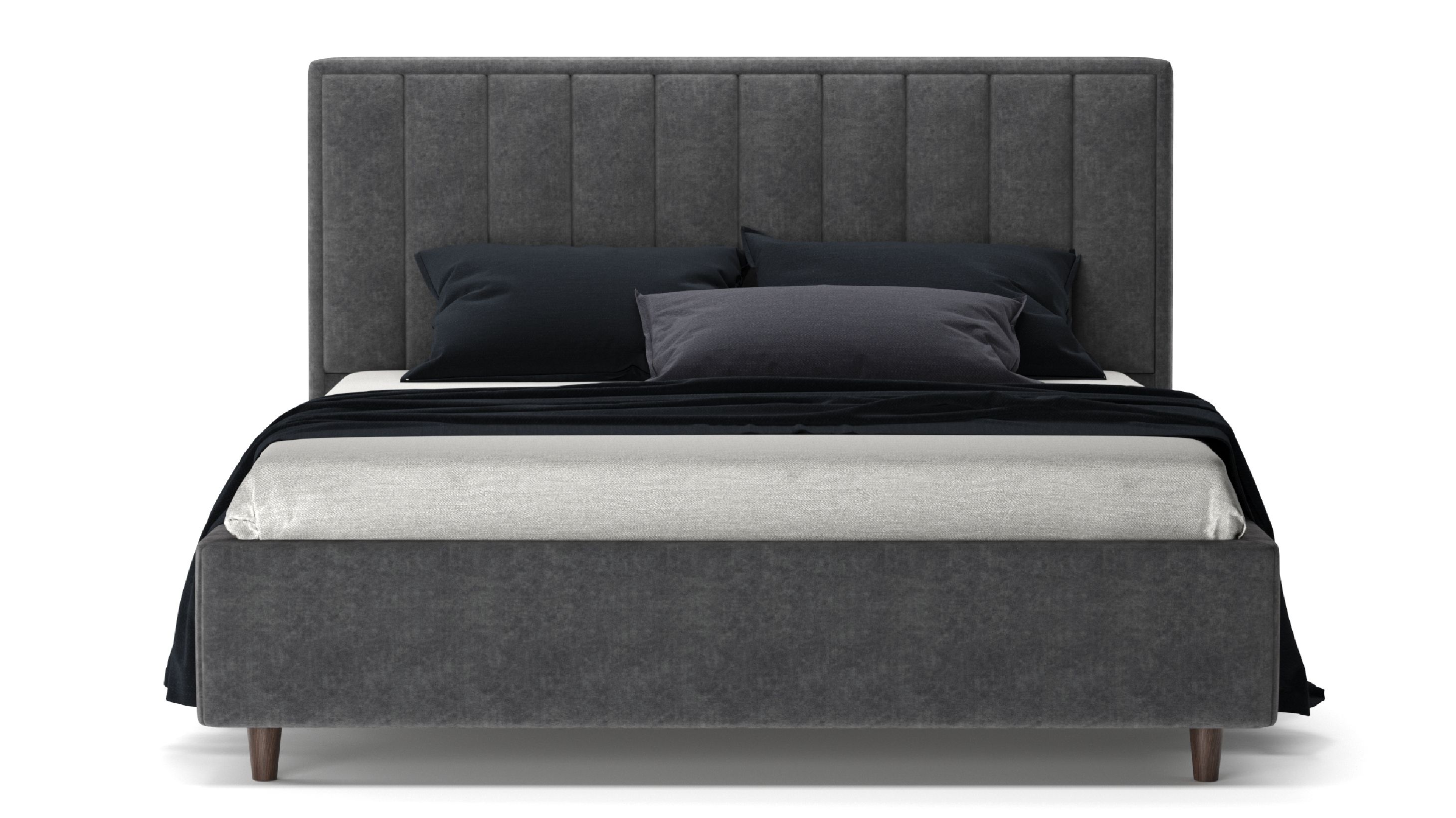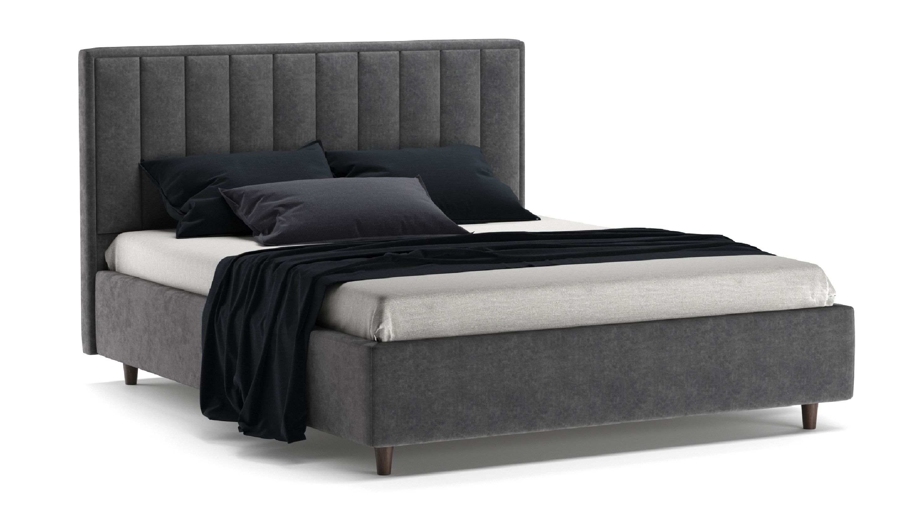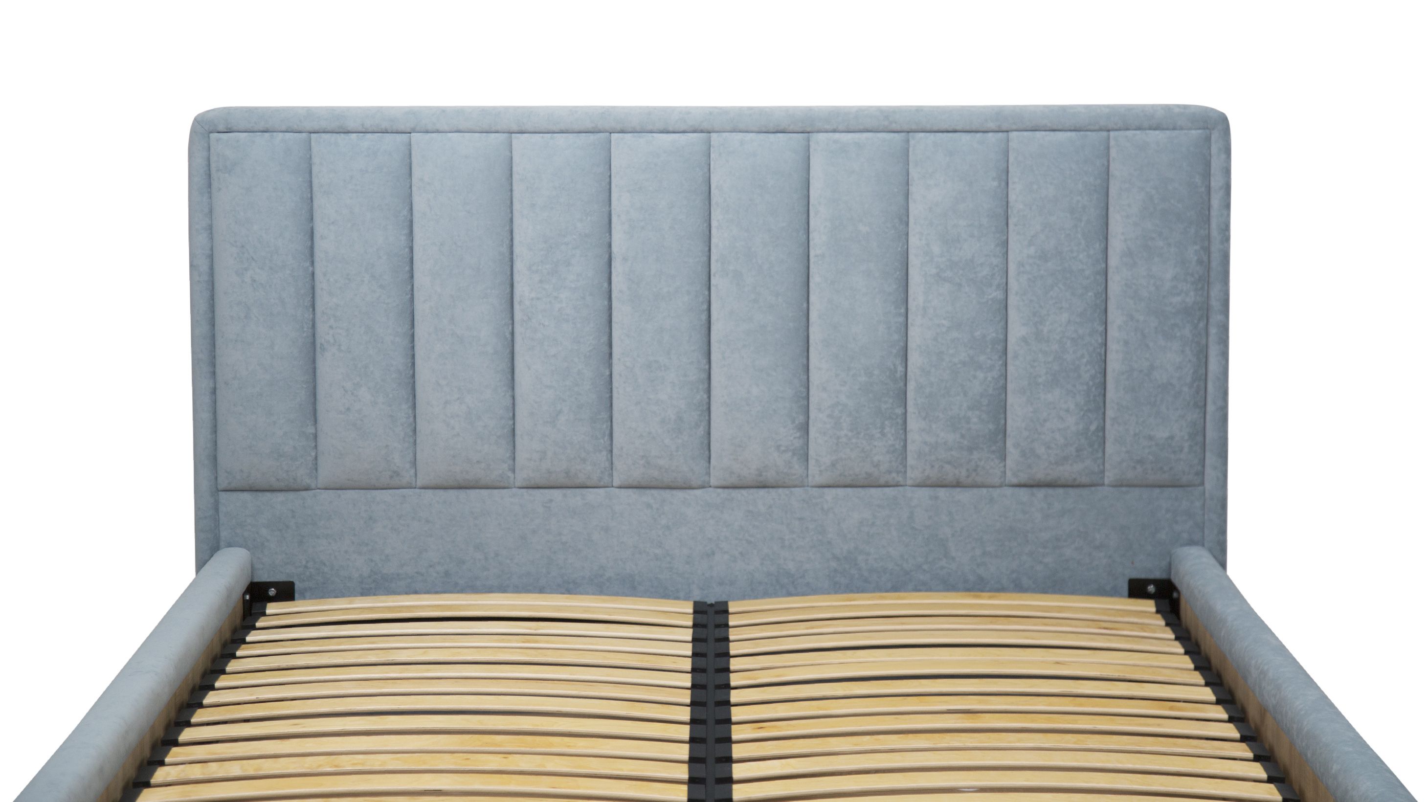 Узголів'я декороване вертикальними полосами і має прошарок м'якого пінополіуретану. Вертикальні лінії візуально збільшують висоту кімнати, додаючи відчуття простору. Таке узголів'я забезпечує зручну опору для спини і голови, що особливо важливо для тих, хто любить читати, дивитися телевізор або просто відпочивати в ліжку.