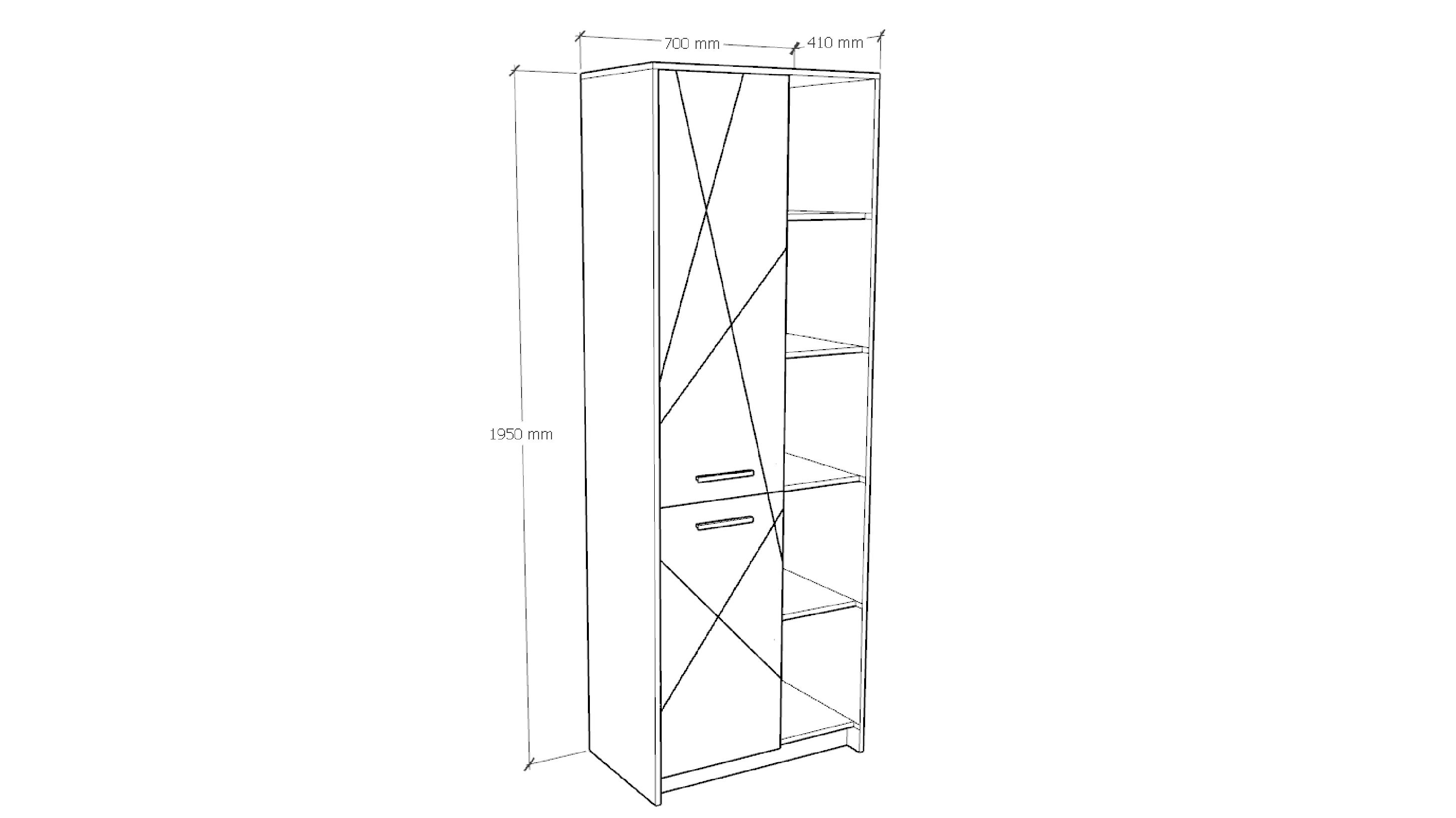 Пенал має ширину - 700 мм, висоту - 1950 мм і глибину - 410 мм.