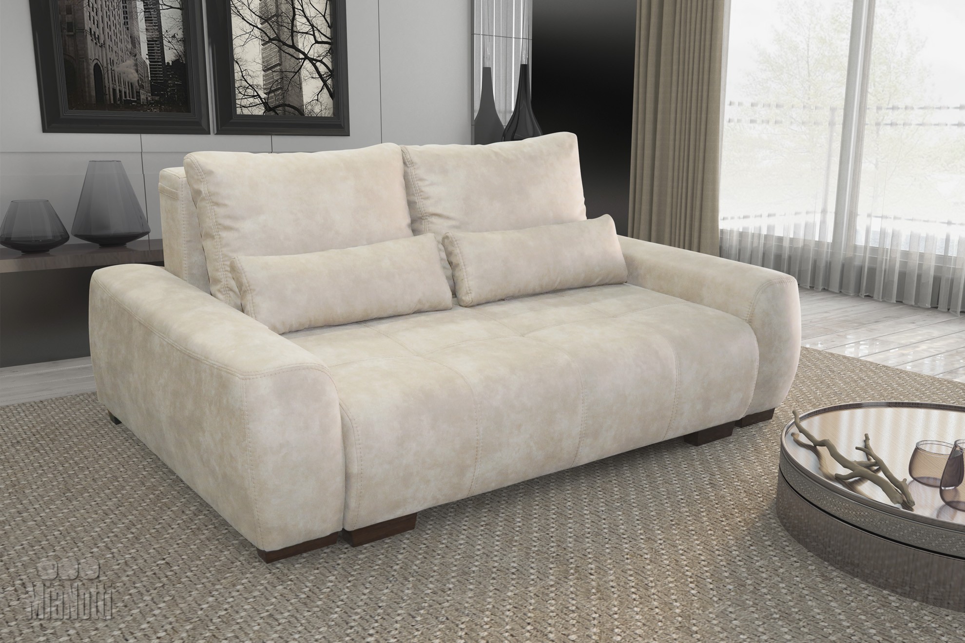Комфортний і елегантний диван «Турін line 2». Каркас дивана зроблений з натурального бруса - сосни. Крім того, в основу входять букові ламелі і блок незалежних пружин Pocket Spring. За допомогою механізму «пантограф» диван з легкістю перетворюється в велике і комфортне спальне місце.