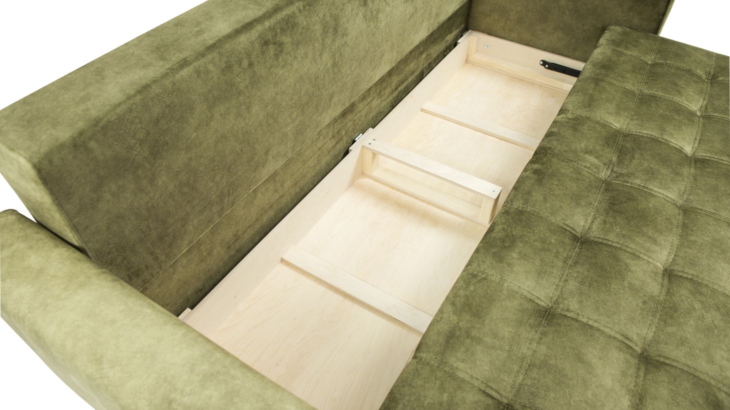 У даній моделі передбачена зручна ніша, яка повністю виконана з фанери: в ній можна зберігати постільну білизну та інше спальне приладдя, що дозволяє значно заощадити простір в кімнаті.