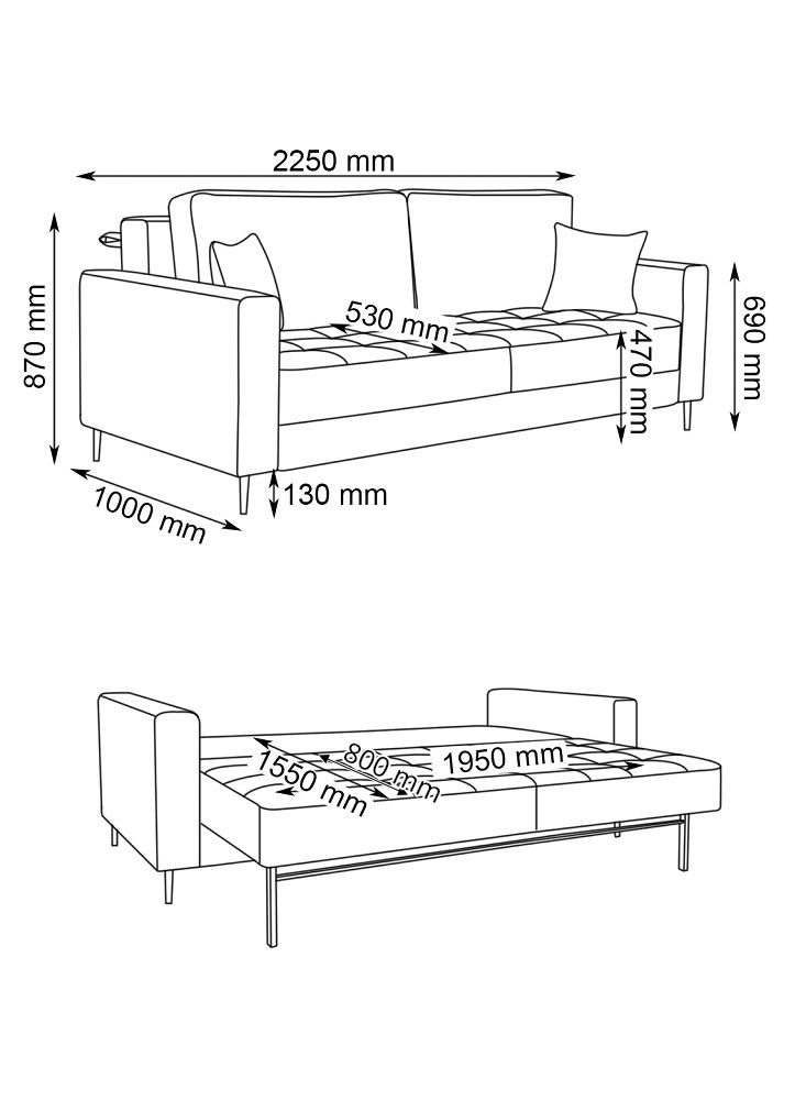 Високі ніжки не тільки надають стильний і сучасний вигляд, але і є практичним елементом. Їх висота 13 см, а отже Ви без зусиль зможете зробити прибирання під диваном й там проїде робот-пилосос.