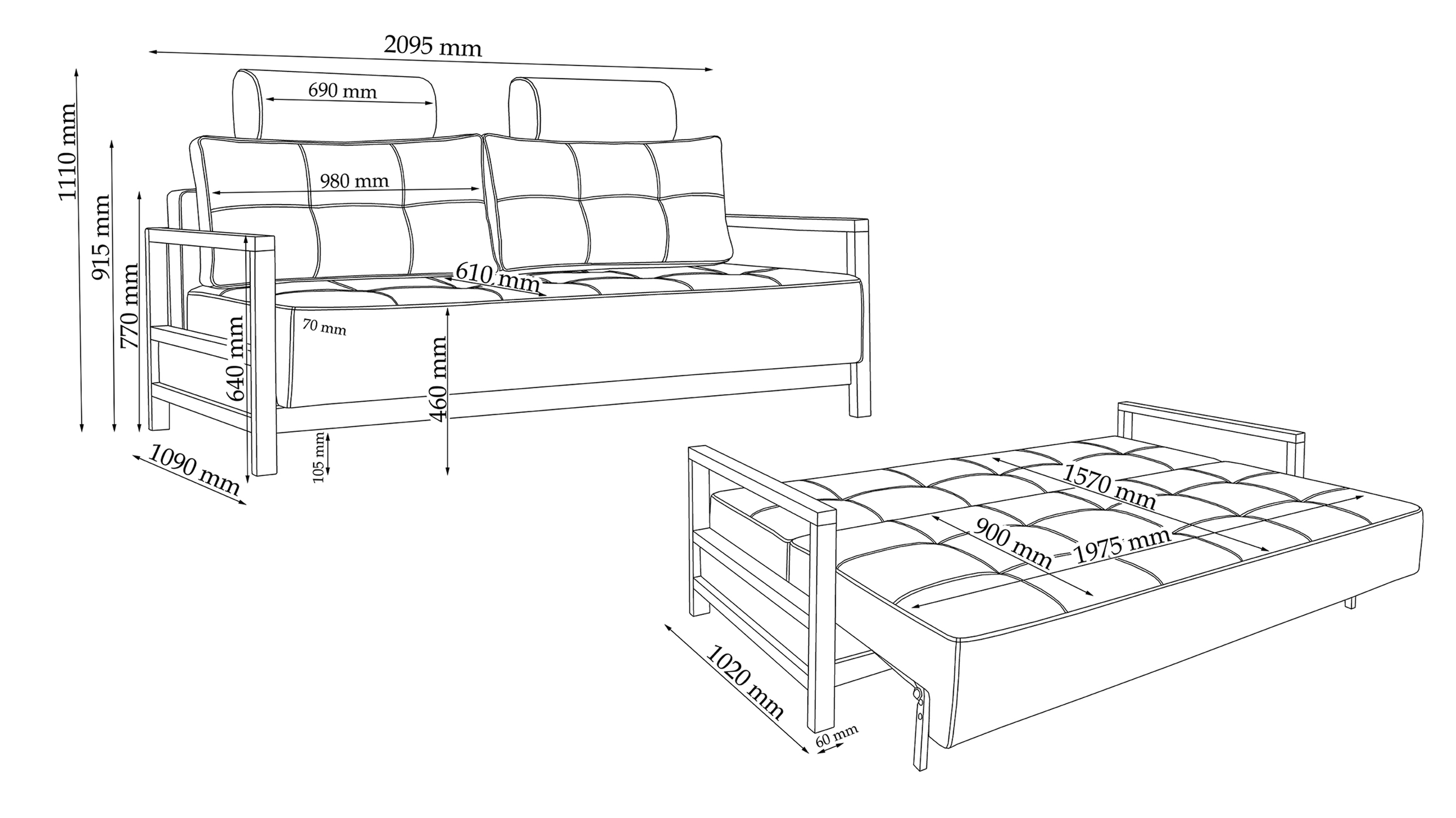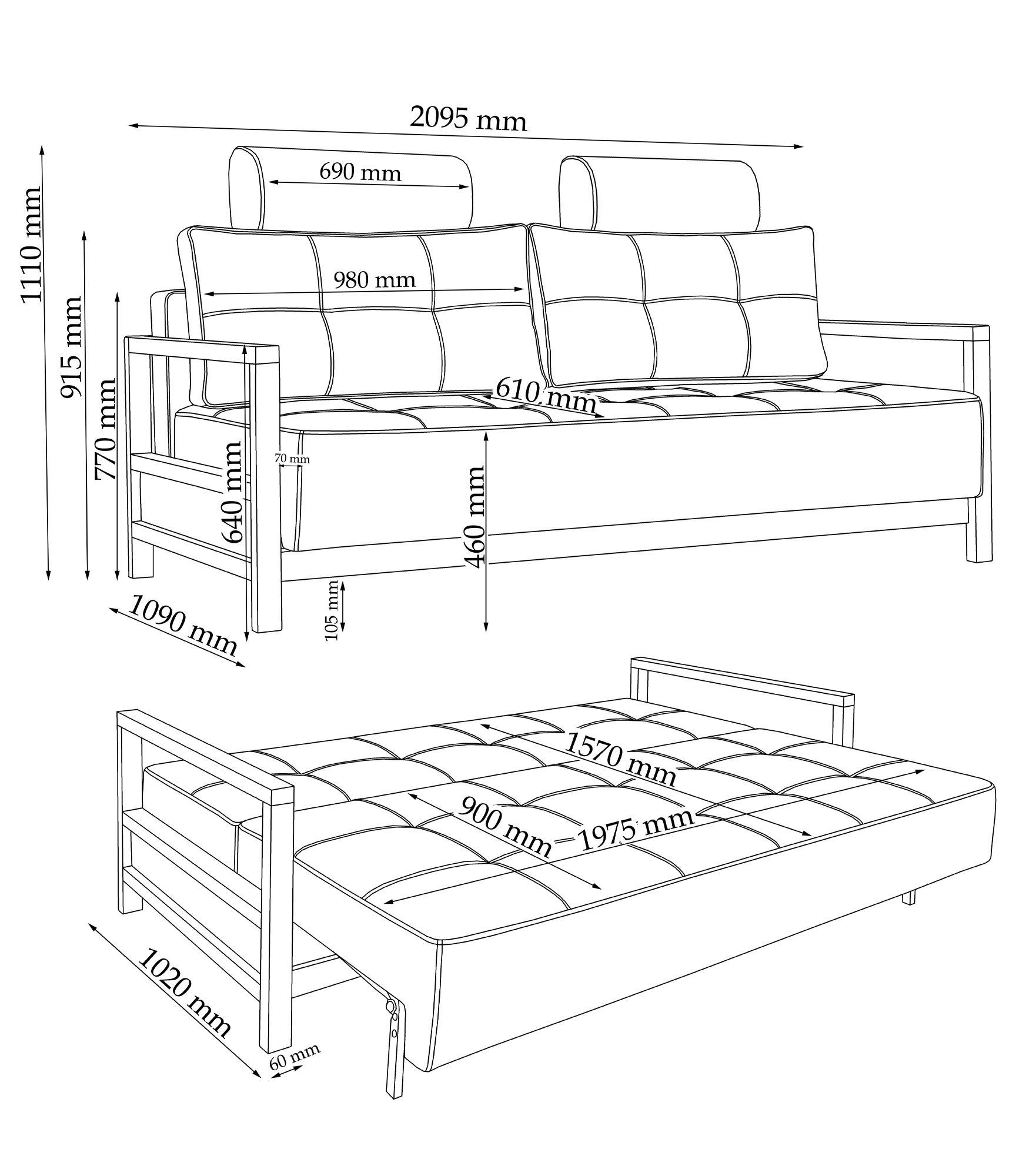 Диван Олаф оснащений механізмом Пантограф, завдяки чому під час розкладки утворюється повноцінне спальне місце. Слід зазначити, що спинка дивана також, як і сидіння, має декоративну строчку, тому в розкладеному вигляді диван виглядає ідеально.