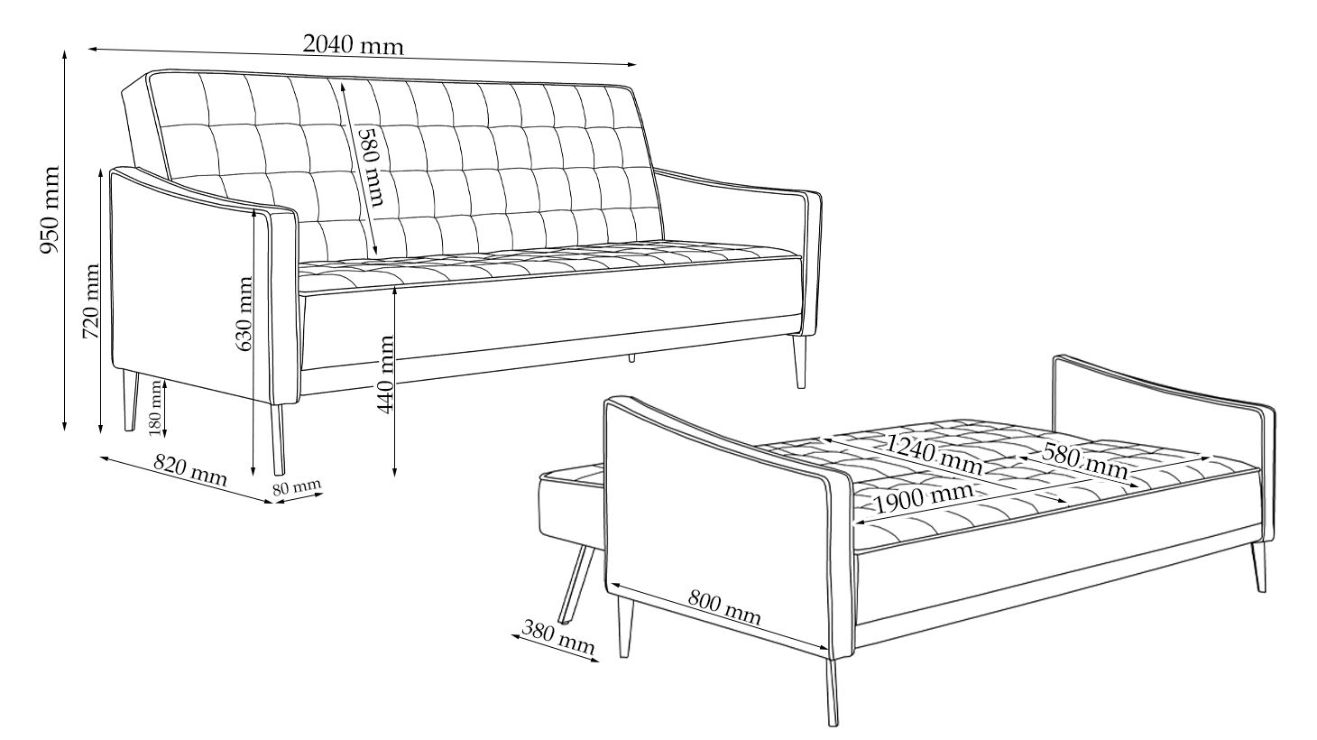 Високі металеві ніжки надають дивану візуальної легкості, а також дозволяють легко прибирати під ним.