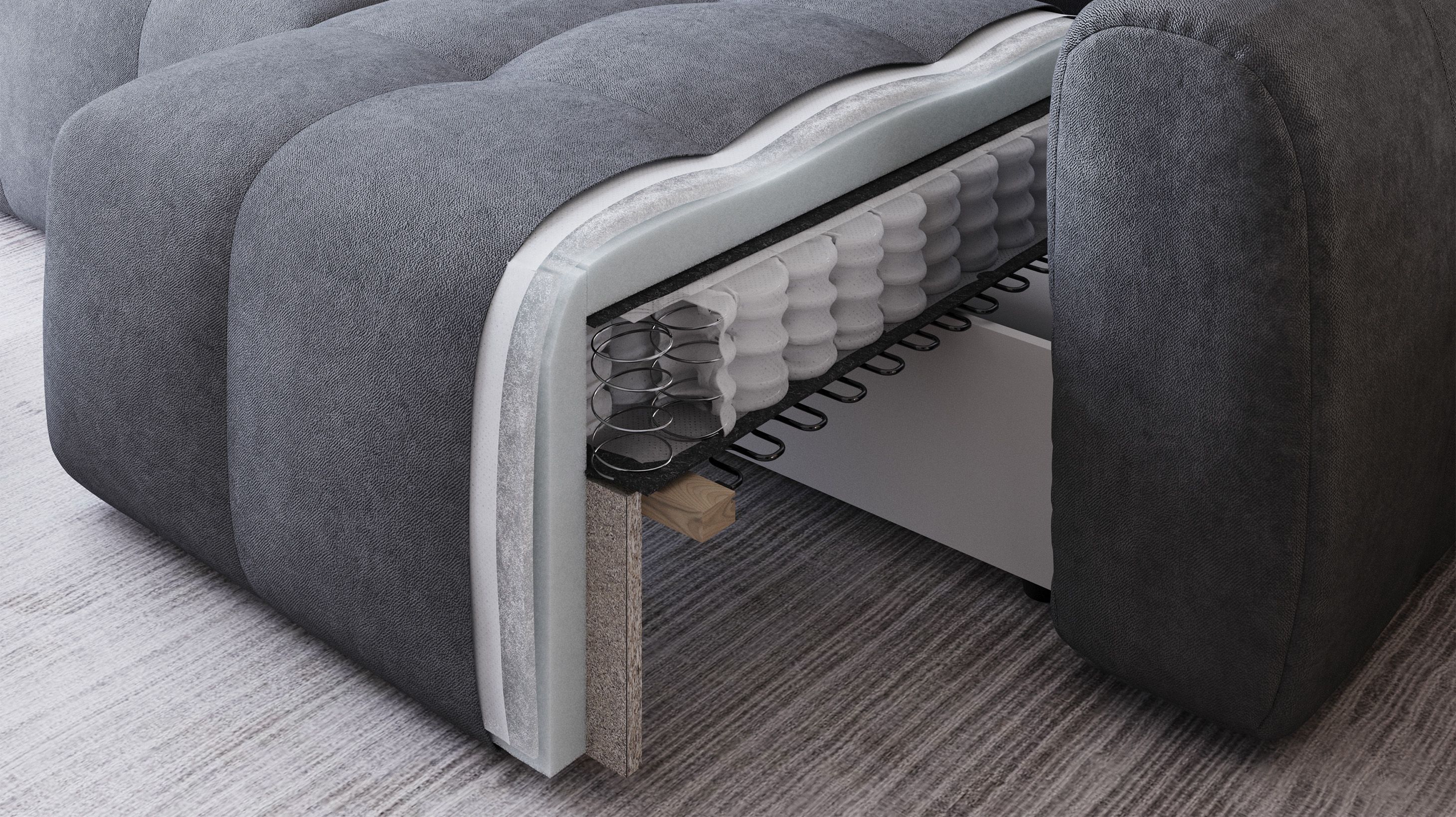 Завдяки незалежним секціям, ви самі керуєте простором: сьогодні це класичний прямий диван, завтра - затишний кутовий (на будь-який бік), а вночі - повноцінне двоспальне ліжко.