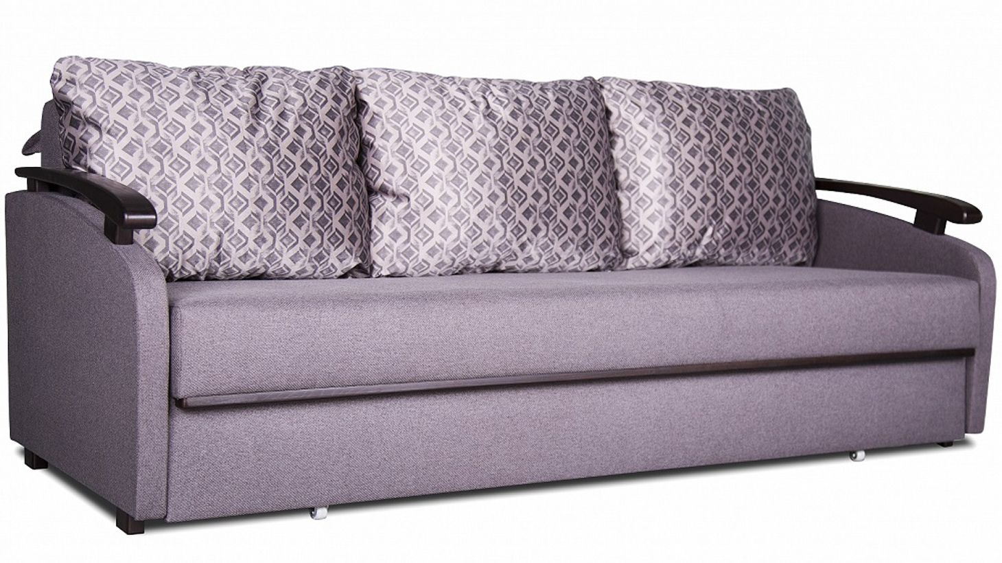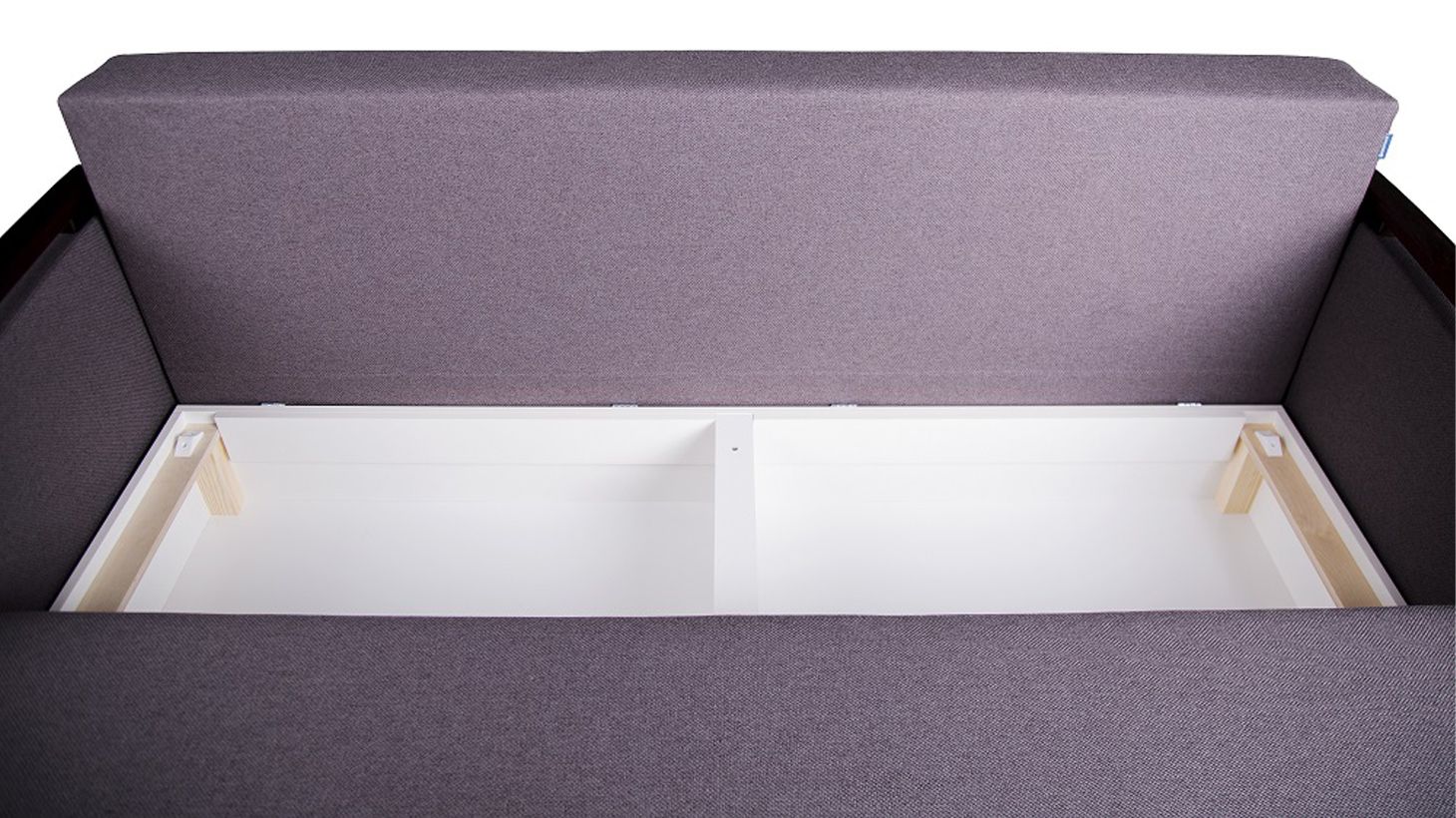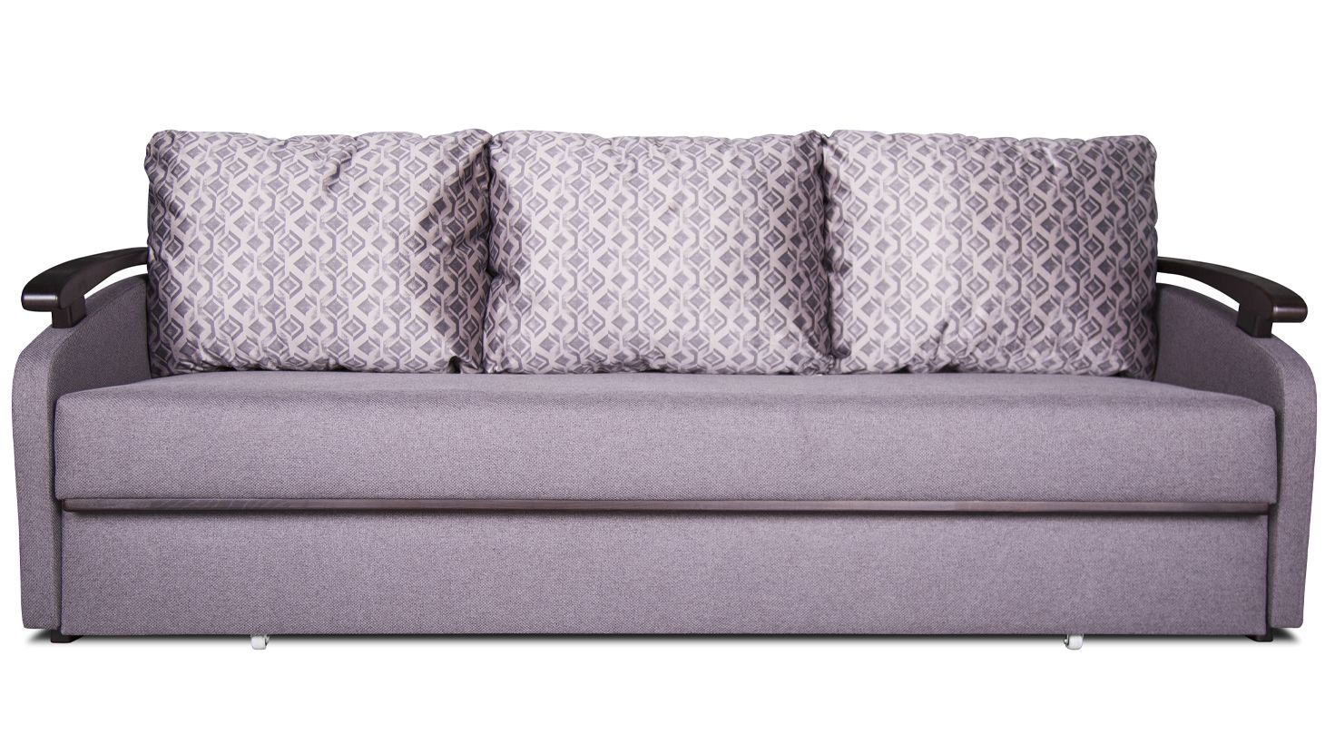 Диван оснащений ящиком для білизни. Модель укомплектована трьома декоративними подушками, що надасть вашому відпочинку особливий комфорт і зручність, а підлокітники з дерева - натуральність і вишуканість.