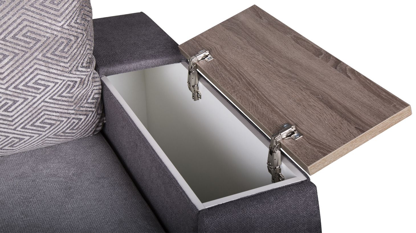 Зручна поличка під одним із підлокітників – бар, ніша для білизни в іншому підлокітнику, короб для білизни під сидінням – все це робить диван «Атіка NEW» неповторним та зручним.