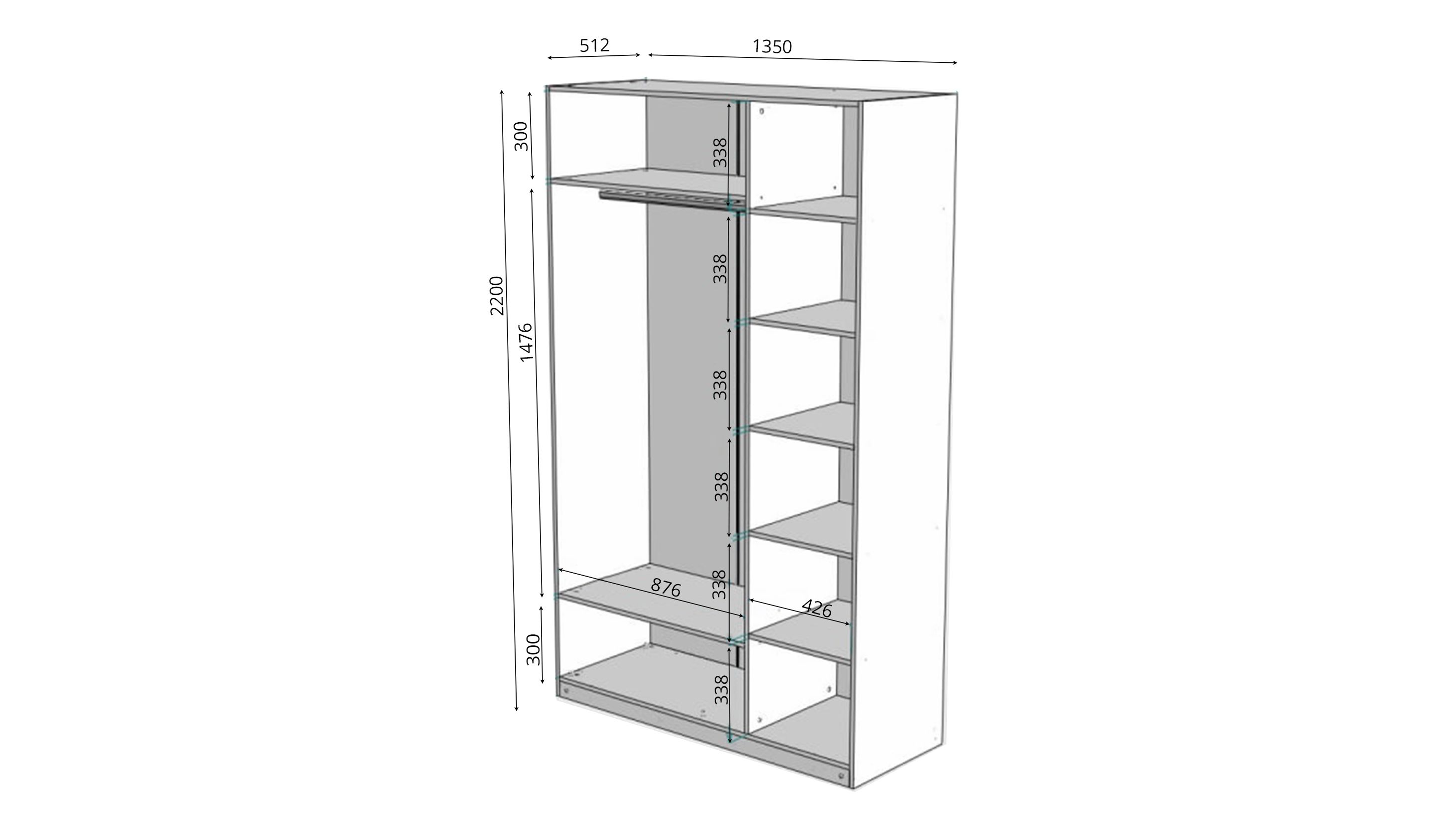 Це практичний варіант для тих, хто хоче купити шафу для одягу з полицями та відділенням для довгого одягу, яка не займає зайвого місця і гармонійно виглядає в інтер'єрі.