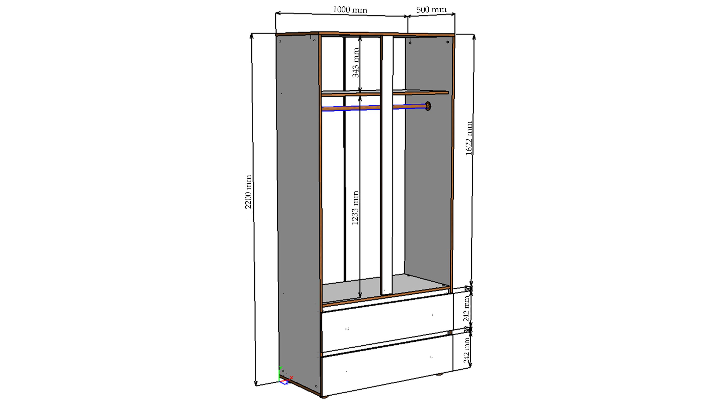 Ця модель стане хорошим вибором для тих, хто шукає шафу з висувними шухлядами та відділенням для довгого одягу, яка поєднує компактність і функціональність.