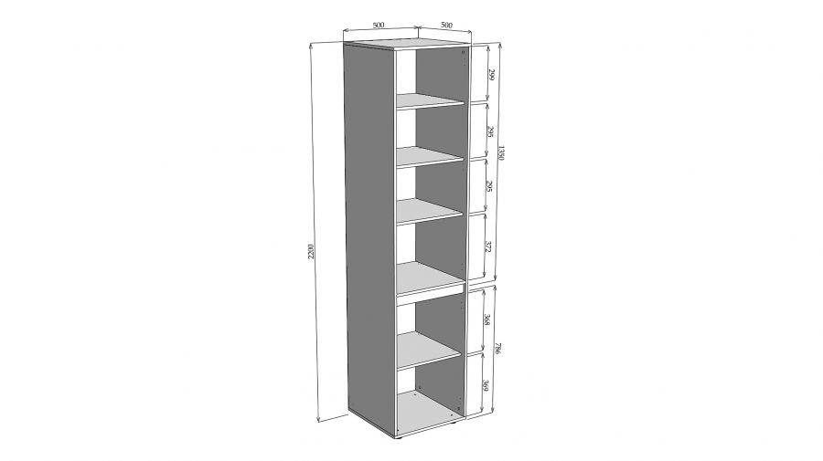 Пенал має двоє дверцят, розташованих по вертикалі, де верхня і нижня частина відкриваються окремо. Усередині передбачено кілька полиць, де зручно зберігати одяг, книги, чи побутові речі. Завдяки висоті пенал дозволяє використати простір по максимуму.