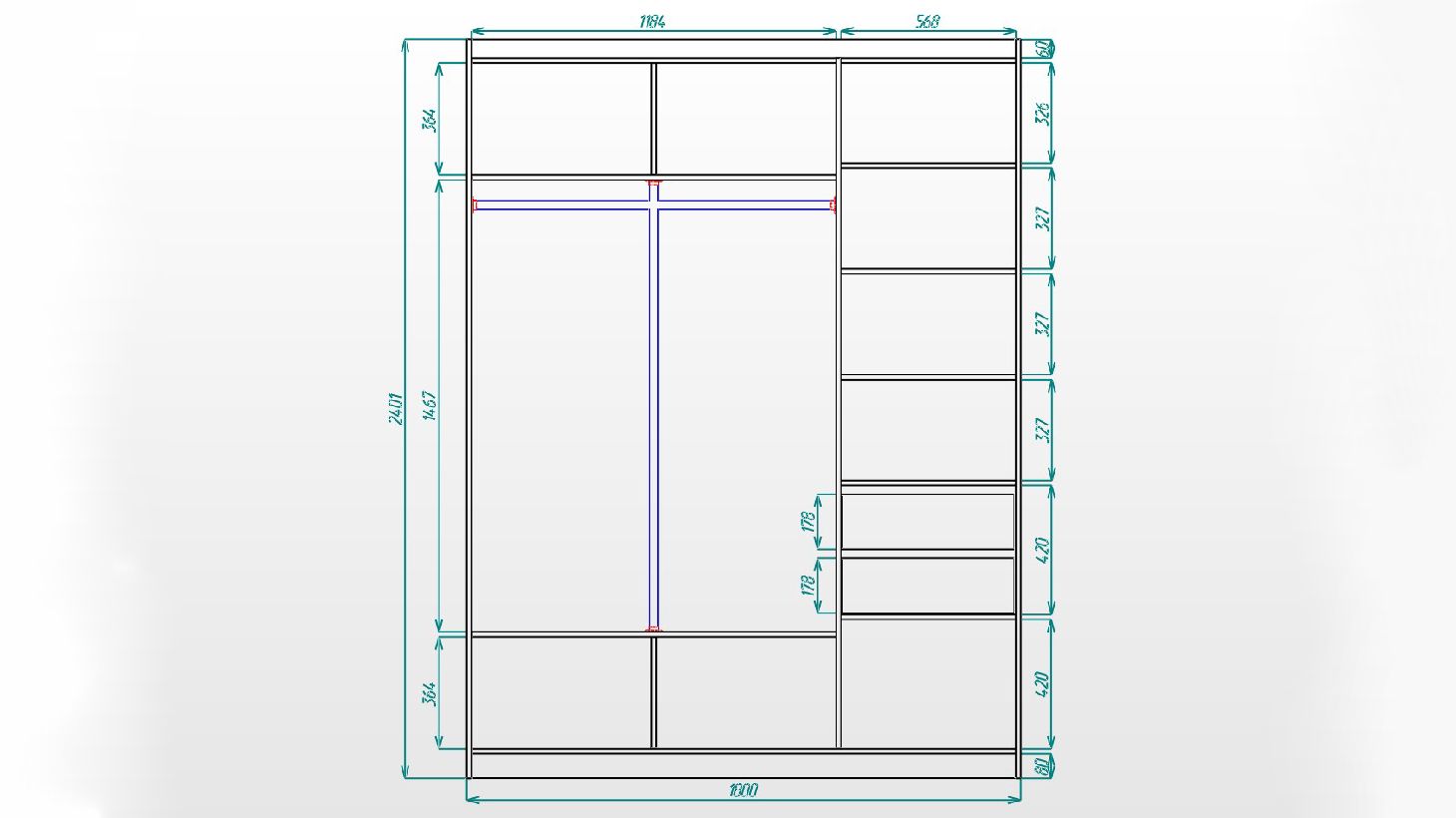 Один фасад виконаний з 5 сегментів ДСП, колір Німфея Альба, Другий фасад дзеркало срібло 5 сегментів.