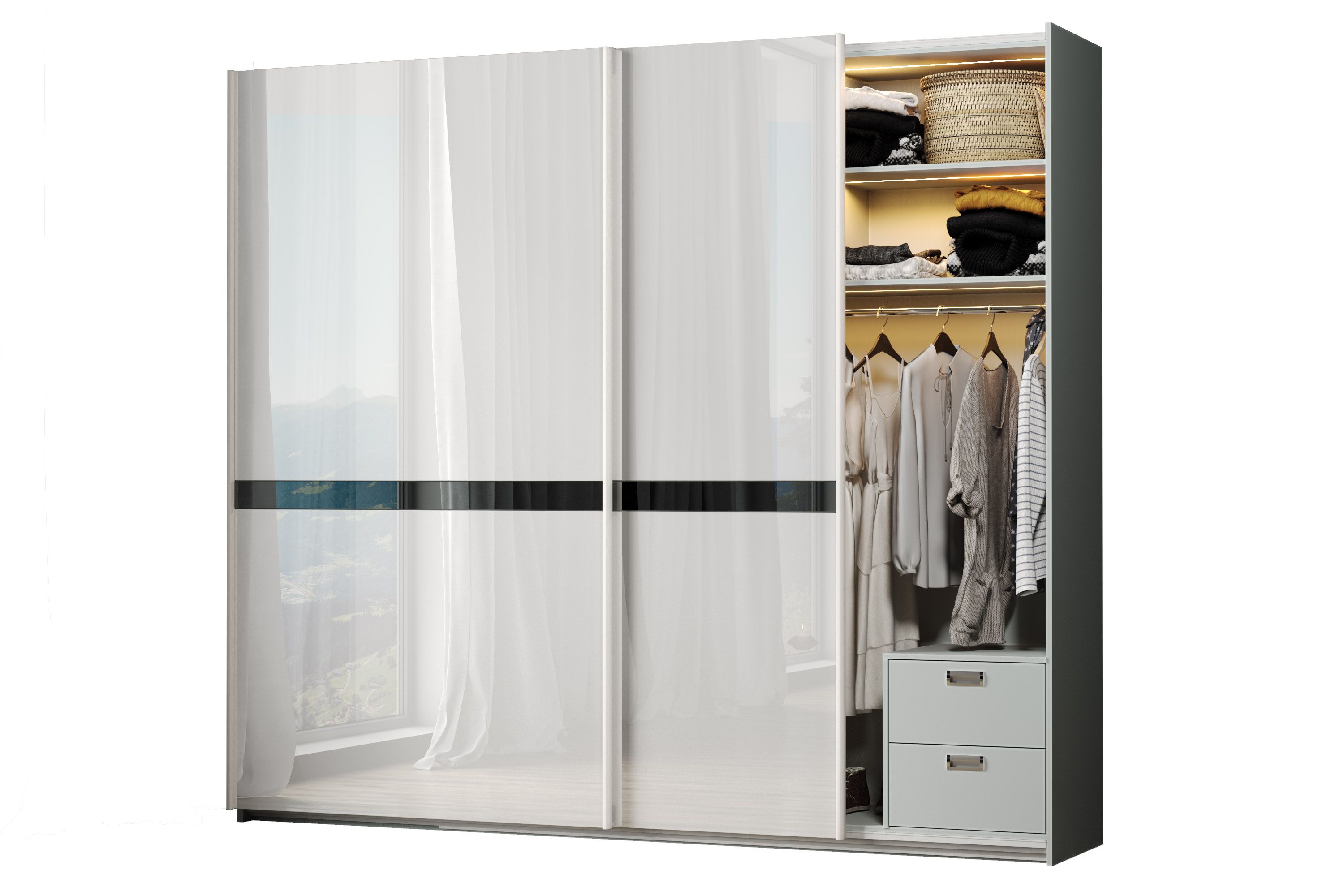 Шафа-купе ErgoSens Lux White на основі підвісної розсувної системи стане стильним та практичним елементом Вашого інтер'єру.